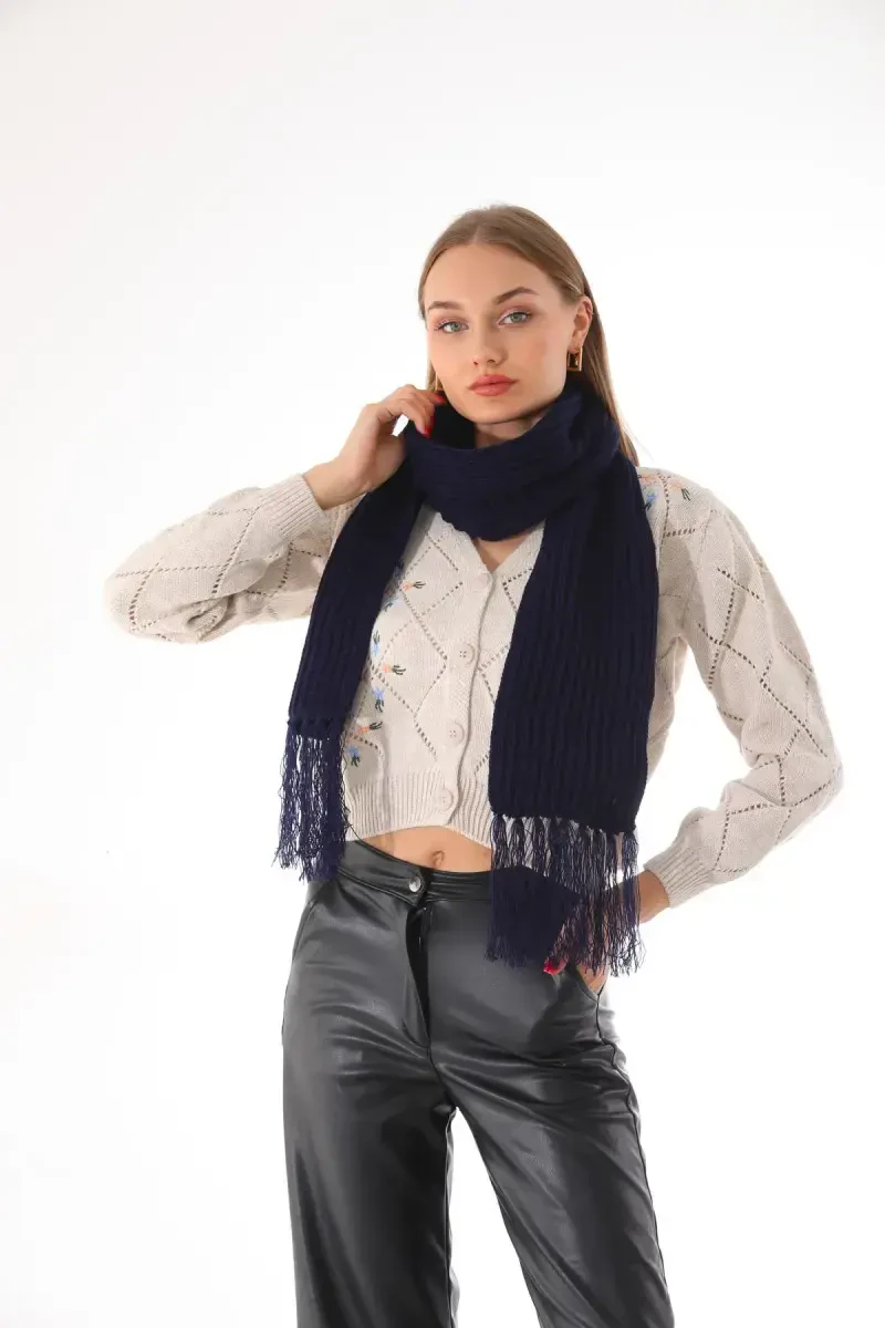 Ayol Saloniki To'qilgan to'q ko'k sharf - To'q ko'k