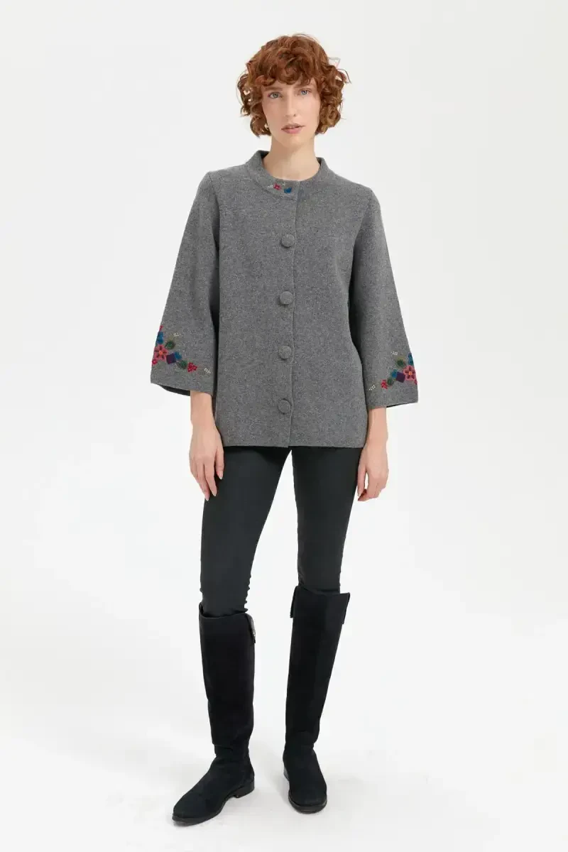 Sovuq qish kunlarida shıkligingizdan voz kechmay, sizni issiq tutadigan Ayollar Tik Yaka Qoli va Yoqasi Kashtali Qisqa Jun Kurtka Tutunrang, garderobingizning ajralmas qismiga aylanishga nomzod! Tutunrang rangining asolatini, zamonaviy kesimi va ko'zni qamashtiruvchi detallari bilan birlashtirgan bu kurtka, ham kundalik foydalanishda, ham maxsus kunlarda tarzingizni aks ettirishga imkon beradi. Yuqori sifatli %50 jun va %50 akril aralashmasi tufayli yumshoq teginishni taqdim etsa, sovuq havoga qarshi yuqori himoya beradi. Qol va yoqa qismidagi maxsus kashtalar, kurtkaga o'ziga xos havo beradi, tik yaka dizayni bo'yningizni issiq tutadi va chiroyli ko'rinish hosil qiladi. Cepli bo'lishi, foydalanish qulayligini ta'minlasa, astarlik tuzilishi kurtkaning yanada bardoshli va qulay bo'lishini qo'llab-quvvatlaydi. Uzun qolli va normal kesimli bu qisqa kurtka, turli tana tiplariga moslashib har bir ayolning shıkligini oldinga chiqaradi. Tugmali yopilishi tufayli osongina kiyiladi va yechiladi. Desenli dokusu va casual/kundalik tarzi bilan har kombiningizga mos keladi. Ister jeanlar bilan sport ko'rinishga ega bo'ling, ister etak va bluzlar bilan yanada chiroyli kombin hosil qiling, bu kurtka har doim sizga hamroh bo'ladi. Ayollar Tik Yaka Qoli va Yoqasi Kashtali Qisqa Jun Kurtka Tutunrang bilan ham issiq qoling, ham stilingizni gapiring!