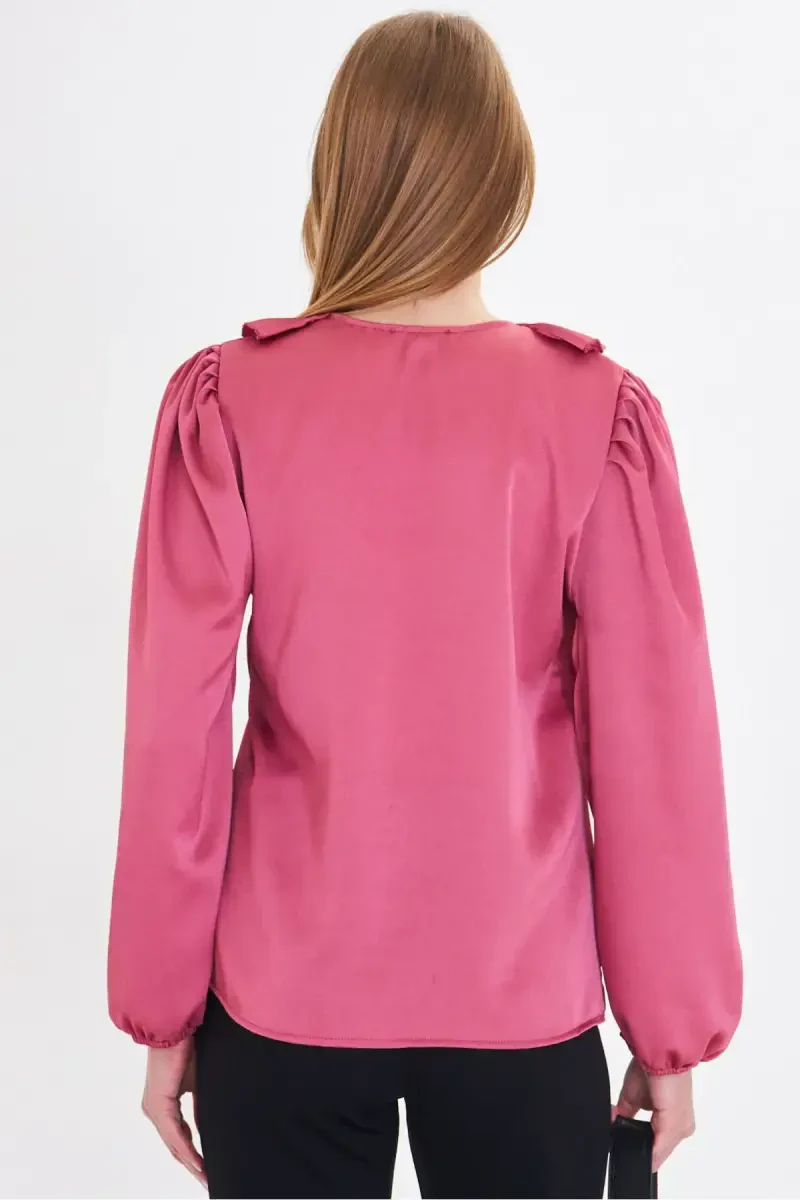 Ayollar uchun to'q pushti yoqasi burmali, yelkasi burmali, qo'llari elastik paxta atlas bluzkasi nafislik va uslubni birlashtirgan maxsus dizaynga ega. ARMONIKA tomonidan taqdim etilgan ushbu bluzka atlas tuzilishi bilan ko'zni qamashtiruvchi yorqinlikni ta'minlaydi, to'q pushti rangi esa jonli va tetiklantiruvchi ko'rinish beradi. Burmali yoqa detali bluzkani yanada ayollik va romantik muhitga olib kirsa, yelka qismidagi burmalar ham nafis teginishni qo'shadi. Elastik qo'l manjetlari ham qulay foydalanishni ta'minlaydi, ham bluzkaning umumiy dizayniga uslub qo'shadi. 80% poliester va 20% paxta aralashmasidan tayyorlangan ushbu bluzka ham bardoshli, ham qulay foydalanish tajribasini taqdim etadi. Polyesterning mustahkamligi va paxtaning yumshoqligi birlashib, kun bo'yi qulay bo'lishingizni ta'minlaydi. V shaklidagi yoqa kesimi bo'yningizni nafis tarzda ochib beradi, asosiy silueti esa turli xil kombinatsiyalarni yaratishga imkon beradi. Kundalik hayotda ham, maxsus tadbirlarda ham osongina tanlashingiz mumkin bo'lgan ushbu bluzka garderobingizning ajralmas qismiga aylanishga nomzoddir. Uzun yengli dizayni salqin havoda ham uslubingizni qurbon qilmaslikni ta'minlasa, muntazam o'lchami har qanday tana turiga mukammal mos keladi. Oddiy naqsh bluzkani osongina birlashtirish imkonini beradi, shuning uchun siz uni turli xil ranglar va naqshlardagi buyumlar bilan osongina moslashtirishingiz mumkin. Xoh u jinsi bilan sport ko'rinishiga ega bo'ling, xoh yubkalar bilan yanada zamonaviy kombinatsiya yarating, bu bluzka har qanday holatda ham sizga hamroh bo'ladi. Oson parvarishlash imkoniyatini taqdim etadigan yuvish bo'yicha ko'rsatmalar tufayli bluzkangizni uzoq vaqt davomida birinchi kundagidek himoya qilishingiz mumkin. Ushbu zamonaviy bluzka nafaqat kunduzi, balki kechki uslub uchun ham ideal variantdir. Burmalar detallari va atlas tuzilishi bluzkani yanada ko'zni qamashtiruvchi qiladi, bu sizga maxsus tadbirlarda va kechki tadbirlarda e'tiborni qaratish imkonini beradi. To'q pushti rangi energiyangizni aks ettirsa, nafis detallar uslubingizni to'ldiradi. ARM-22K001059-To'q pushti model raqami bilan taqdim etilgan ushbu bluzka sifat va uslubni bir vaqtning o'zida qidirayotgan ayollar uchun mukammal tanlovdir. Garderobingizga yangi nafas olib keladigan ushbu bluzka bilan har qanday muhitda farq yaratishga tayyor bo'ling.