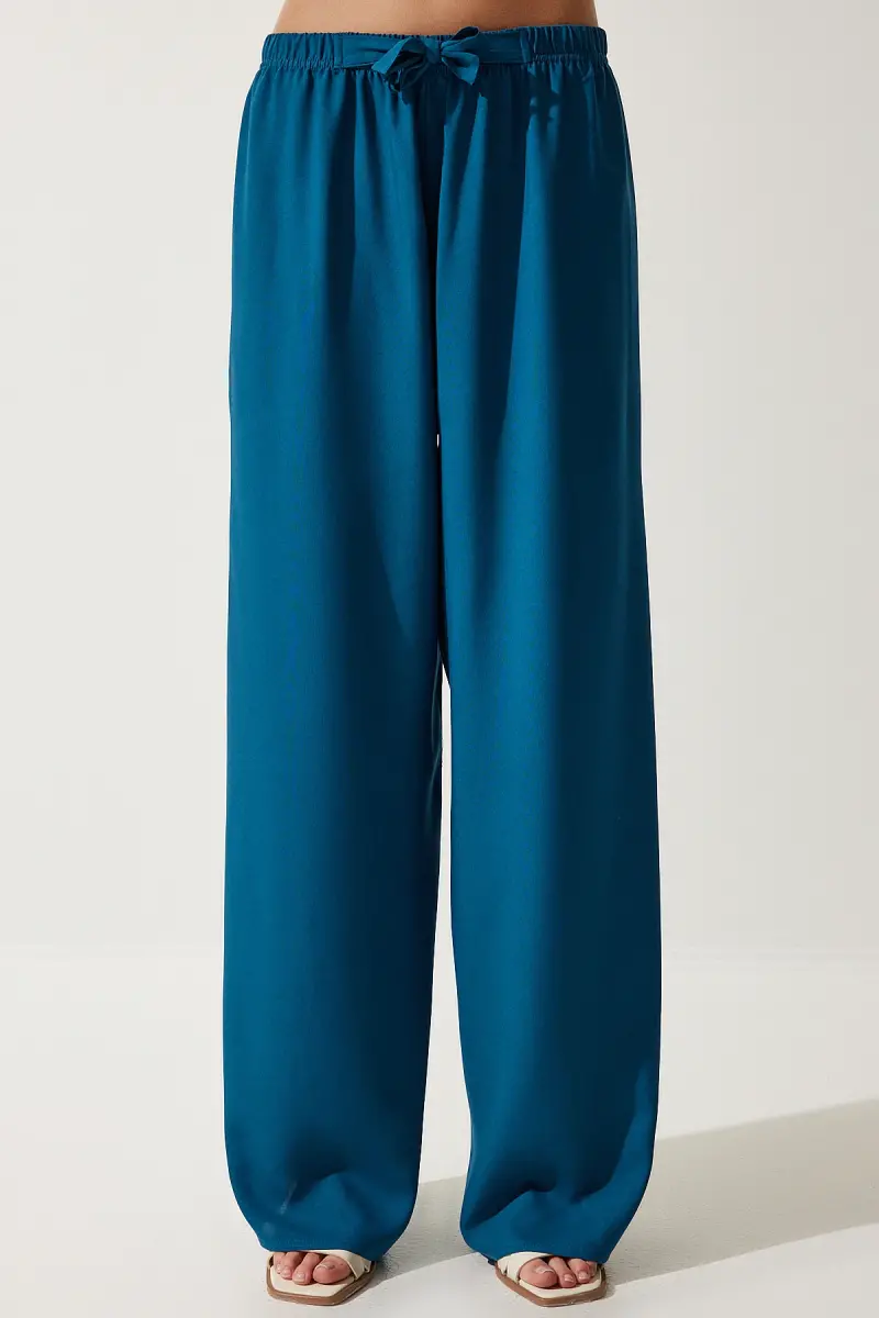 ayollar palazzo shim, viskoza shim, yozgi shim, neft yashil shim, qulay shim, chiroyli shim, ayollar kiyimi, firuza shim, EN00610, elastik bel shim