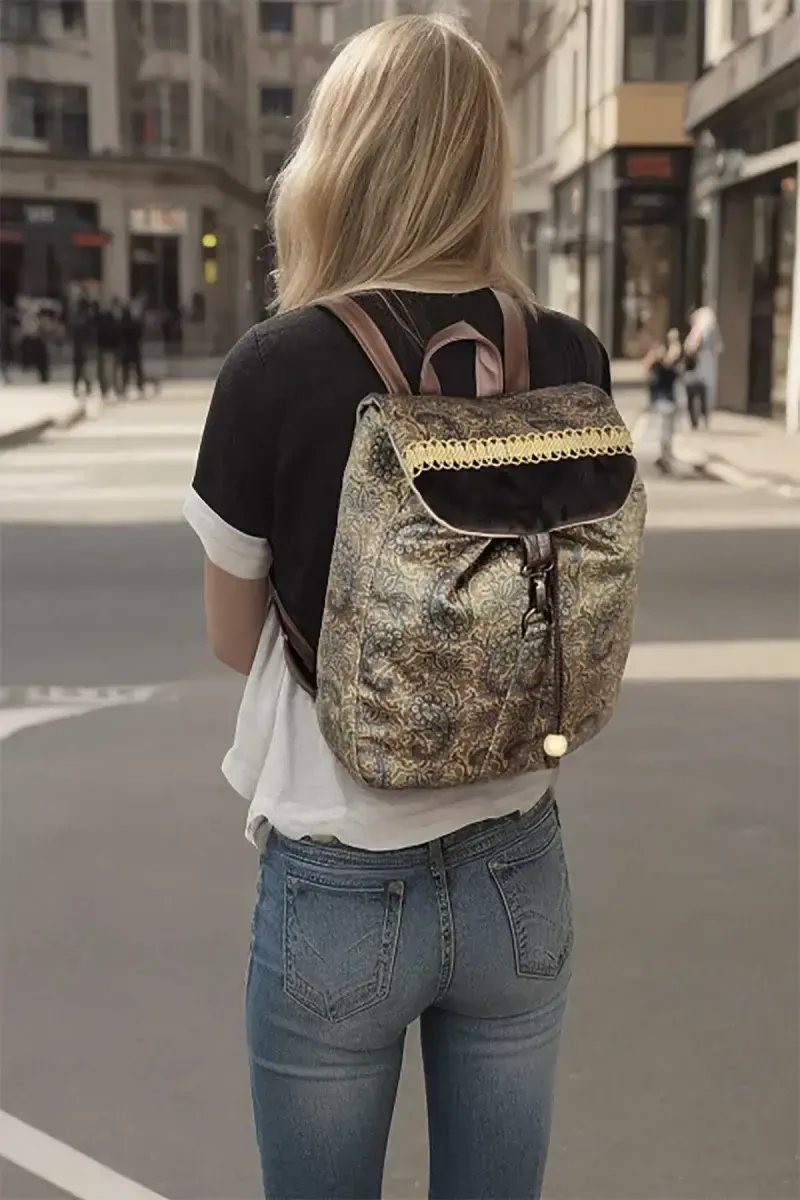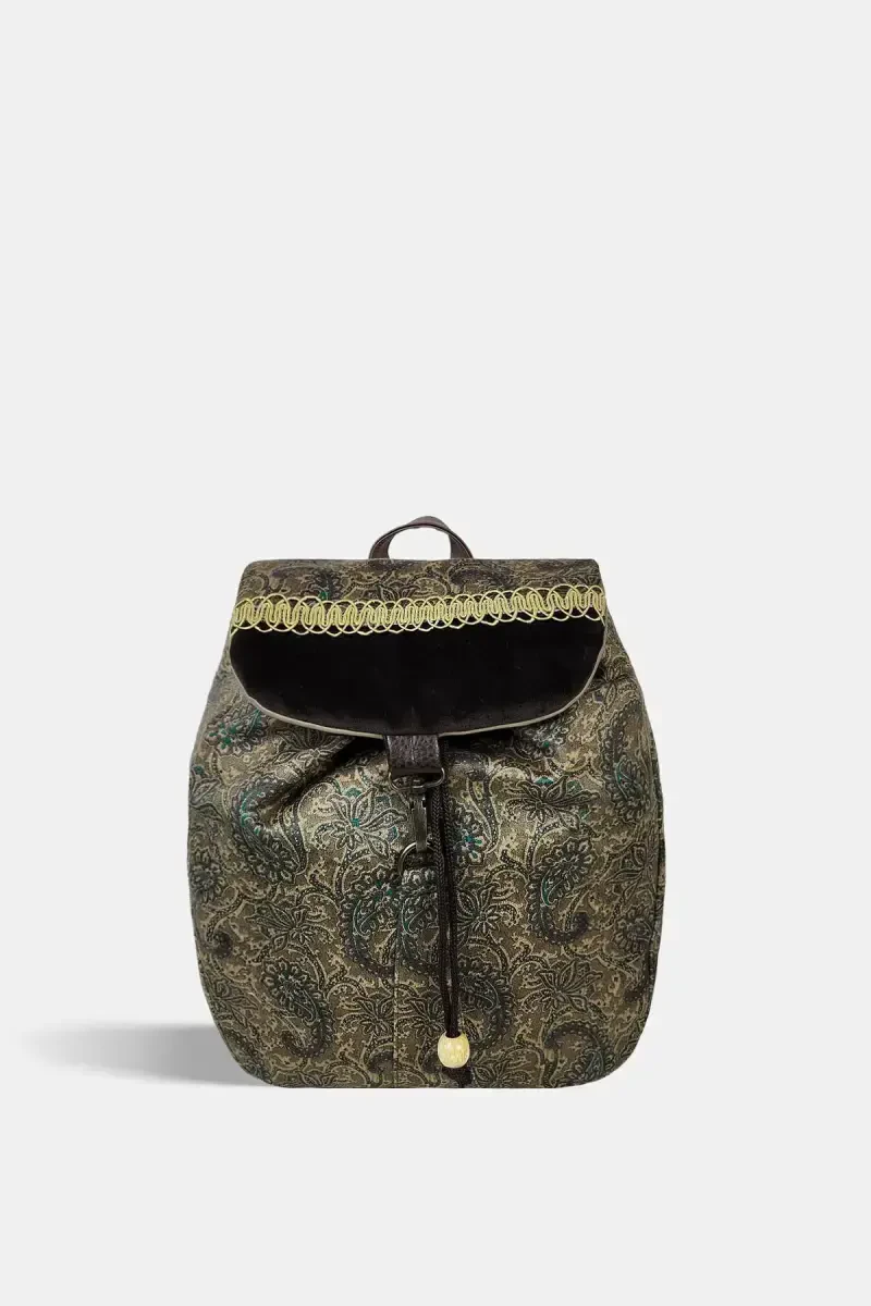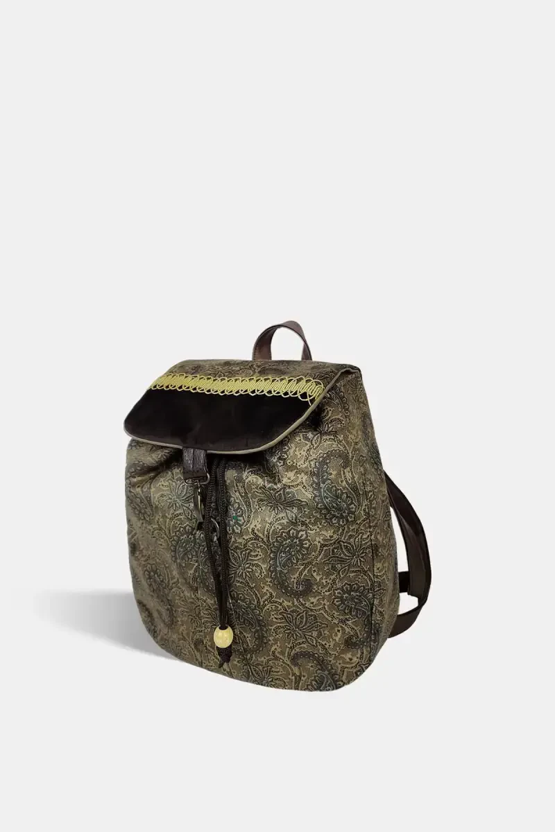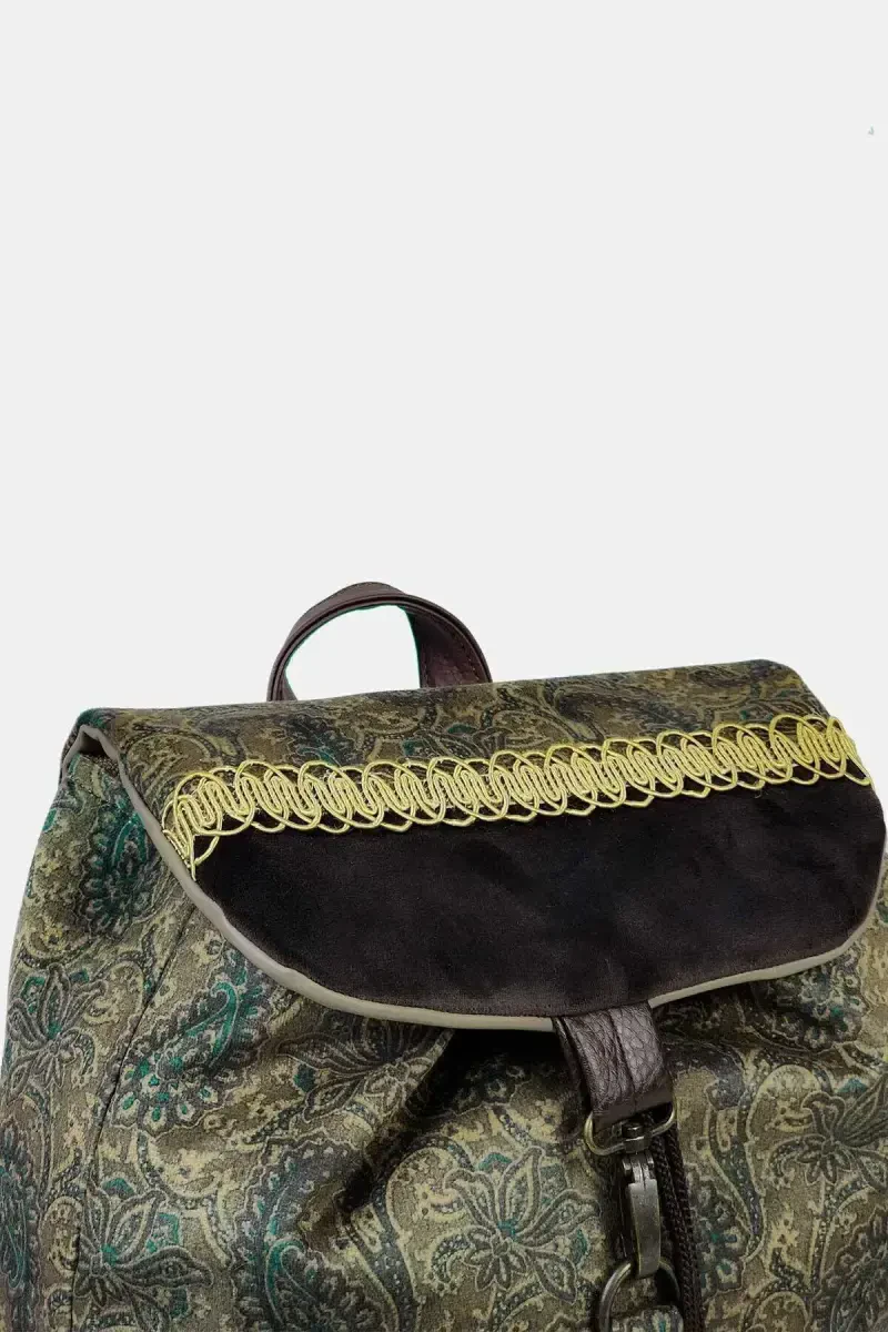 Yashil roʻmolli, qoʻlda ishlangan detallarga ega ryukzak | Ayollar sumkasi
