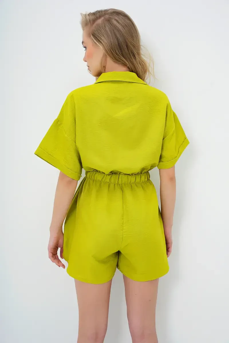 Yog' Yashili Short Tulum | Ko'ylak Yoqali Ikkita Cho'ntakli Ayollar Tulumi