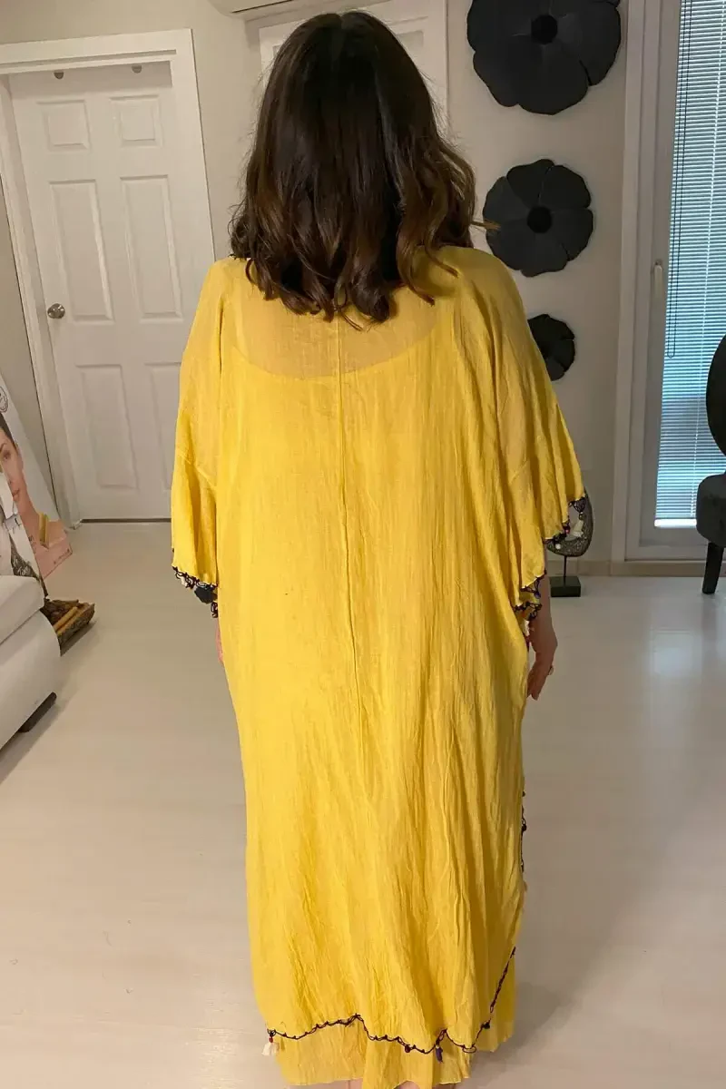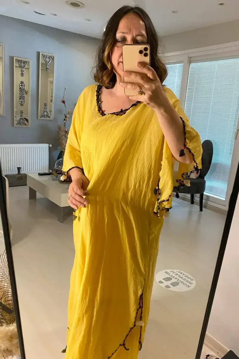 **Ayollar uchun 100% paxta yozgi tülbent koʻylak, xantal GLS16**