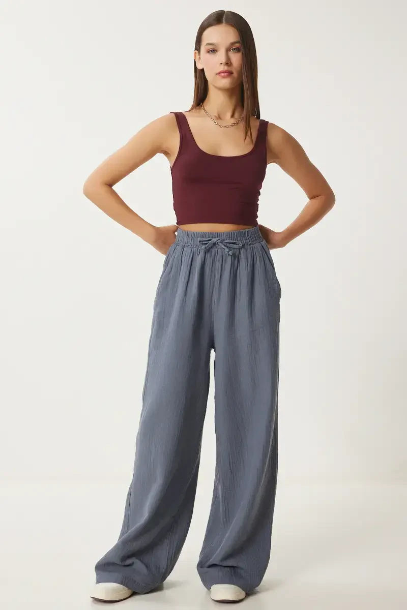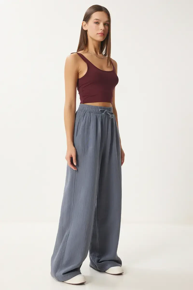 Ayollar uchun antratsit muslin palatsosi shim MX00160-Antratsit, yoz oylarining ajralmas qismiga aylanadi, ham zamonaviy, ham qulay variant. Yupqa va yengil muslin matosi teringizga muloyimlik bilan tegib, kun bo'yi tetiklikni ta'minlaydi. Keng kesimi tufayli harakatlaringizni cheklamaydi, erkin harakatlanishingizga imkon beradi. Antratsit rangi har qanday ustki kiyim bilan osongina birlashtirilishi mumkin va turli xil uslublarni yaratishga imkon beradi. Kundalik foydalanishda futbolka va sandal bilan yoki maxsus kechada zamonaviy bluzka va poshnali tufli bilan birlashtirib, har qanday muhitda diqqatga sazovor bo'lishingiz mumkin. Palatso shimining baland belli kesimi tana chiziqlaringizni yanada nafis ko'rsatadi, shu bilan birga zamonaviy ko'rinish beradi. Matosining tabiiy tuzilishi tufayli osongina dazmollanadi va uzoq umr ko'radi. Garderobingizning asosiy qismlaridan biri bo'lgan ushbu shim, qulaylik va uslubni birgalikda qidirayotgan ayollar uchun ideal tanlovdir. Antratsit rangining nafisligi va muslin matosining yengilligi birlashib, sizga har qanday mavsumda foydalanishingiz mumkin bo'lgan ko'p qirrali qismni taqdim etadi. MX00160-Antratsit model kodi bilan taqdim etilgan ushbu shim, sifat va uslubni birgalikda qidirayotganlarning e'tiborini qozonadi. Ish hayotida ham, kundalik faoliyatingizda ham osongina afzal ko'rishingiz mumkin bo'lgan ushbu shim, uslubingizga nafislik bag'ishlaydi. Muslin matosining nafas oladigan tuzilishi terlashning oldini oladi va kun bo'yi qulaylikni ta'minlaydi. Palatso kesimi oyoqlarni uzunroq va ingichka ko'rsatib, ayollarning e'tiborini qozonadi. Ushbu shim, ham qulaylikka e'tibor qaratadigan, ham o'z uslubidan voz kechishni istamaydigan ayollar uchun ajoyib tanlovdir.