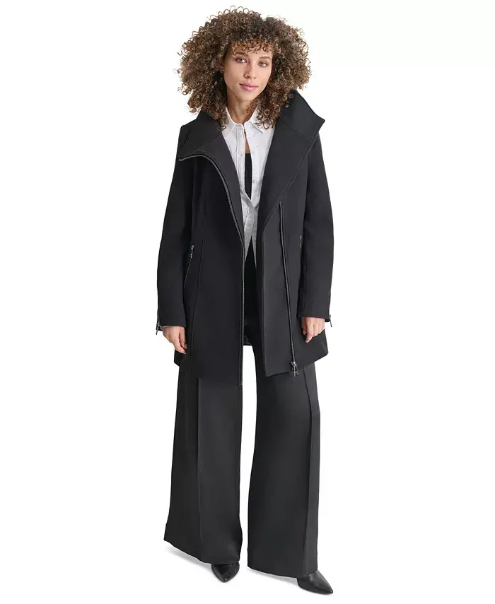 Ayollar assimetrik fermuarli palto, Modazone uchun yaratilgan