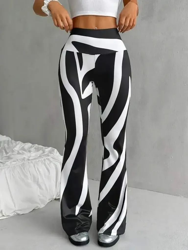 Yuqori bel, zebra naqshli, dalgʻich mato, toparlovchi, kundalik, sport, tayt, ayollar, kiyim, moda