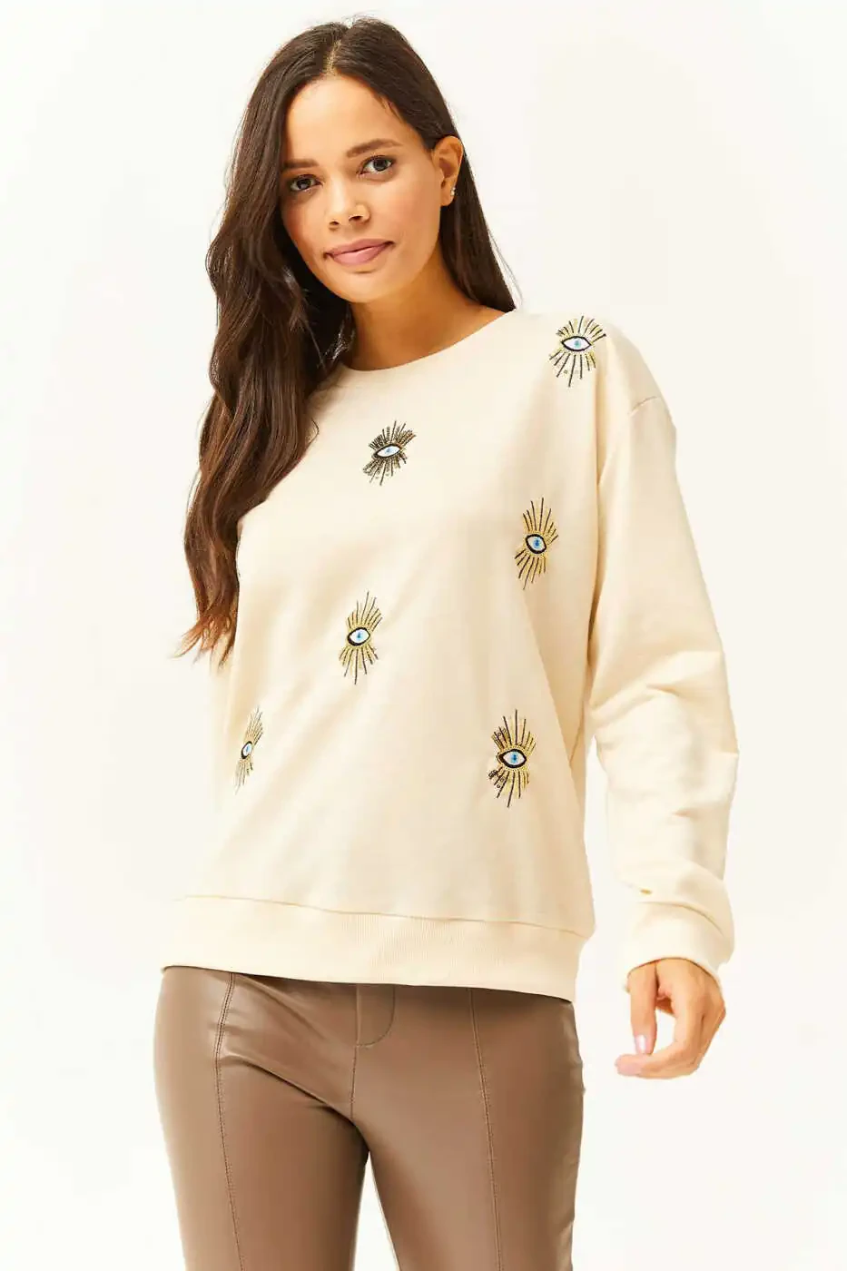 Ayollar uchun bej ko'zli naqshli mavsumiy sviter SWT-19000598 ko'zni qamashtiruvchi naqshli detallar bilan bezatilgan bej rangli qismdir. 70% paxta va 30% poliester aralash materialidan yumshoq teginish va nafas oladigan tuzilishni taqdim etadi. Odatiy o'lchamdagi kesimi tufayli tana qismlarini quchoqlab turgan, ammo siqmaydigan tuzilishga ega bo'lib, barcha tana turlariga mos keladi. Zamonaviy va moda dizayni bilan kundalik foydalanish uchun idealdir. Odatiy qo'l turi va uzun qo'l dizayni bilan mavsumiy o'tishlarda ideal tanlovdir. Salqin havolarda sizni issiq ushlab turishi bilan birga, moda ko'rinishga ega bo'lishingizni ta'minlaydi. 1-turdagi yuvish bo'yicha ko'rsatmalarga muvofiq osongina tozalanadi. Payet detallari bilan boyitilgan ushbu sviter, ko'zni qamashtiruvchi porloqlik qo'shadi, shu bilan birga nafis teginishni beradi. Barcha yosh guruhlariga mos keladigan dizayni bilan keng foydalanuvchilar doirasiga ega.