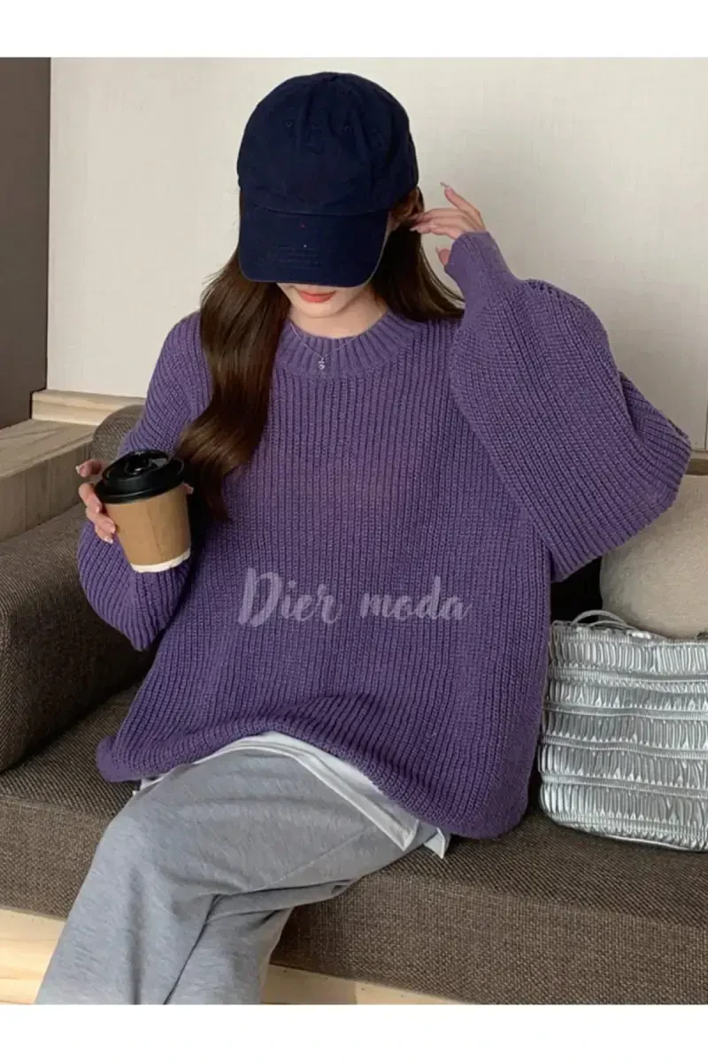 Ayollar bordo katta o'lchamli trikotaj kozok-Binafsha