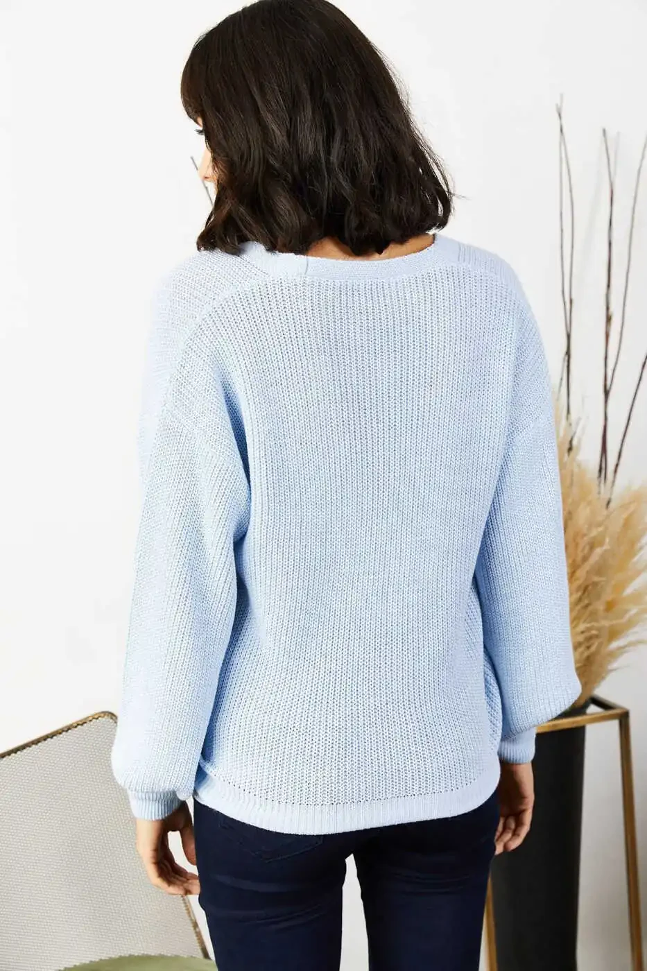 Ayollar uchun koʻk tugmachali triko kardigan: qulaylik va shiyrinlikning uygʻunligi