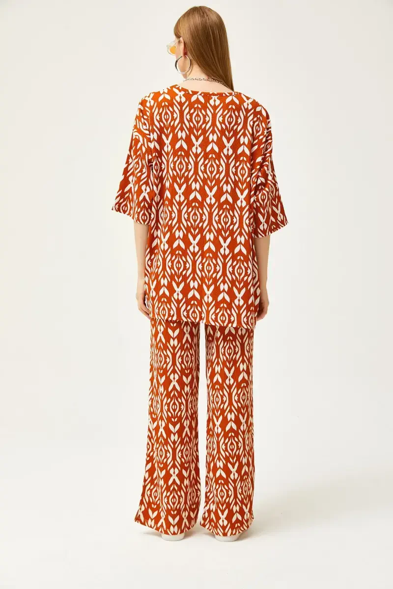 Ayollar dolchin ustki kimono ostki shimlar naqshli to'plami bilan nafislik va qulaylikni birga his eting! OLO LOOK Official tomonidan ehtiyotkorlik bilan ishlab chiqilgan ushbu maxsus to'plam garderobingizning ajralmas qismiga aylanishga nomzod. Sizning uslubingizni aks ettiruvchi naqshlari, zamonaviy kesimi va qulay matosi bilan u kundalik foydalanishda ham, maxsus daqiqalarda ham sizga hamroh bo'ladi. Kimono ustki va shimlarining uyg'unligi nafis ko'rinishni ta'minlasa, viskon matoning yengilligi kun bo'yi qulaylik beradi. Uyda dam olayotganingizda, do'stlaringiz bilan uchrashayotganingizda yoki hashamatli kechki ovqatga ketayotganingizda, ushbu to'plamni tanlashingiz mumkin. Kombinatsiyasi oson rang toni tufayli turli xil aksessuarlar va poyabzallar bilan o'z uslubingizni sozlashingiz mumkin. Dolchin rangining iliqligi, naqshlarning jonliligi bilan birlashib, sizga energiya beruvchi va ko'zni qamashtiruvchi uslubni yaratishga yordam beradi. Ushbu to'plam nafaqat kiyim, balki turmush tarzini ham taklif etadi. O'zingizni maxsus va erkin his qiladigan ushbu to'plam bilan har qanday muhitda farq yarating. Bundan tashqari, tez yetkazib berish va oson qaytarish imkoniyati bilan xaridingizni xavfsiz tarzda yakunlashingiz mumkin. Qo'ldan boy bermaslik kerak bo'lgan kampaniya narxida taklif etilayotgan ushbu maxsus to'plamni darhol savatingizga qo'shing va uslubingizga yangi nafas olib kiring. Unutmang, stoklar soni cheklangan! Ushbu noyob to'plamni garderobingizga qo'shishga shoshiling. Nafislik va qulaylikni birga izlayotgan ayollarning tanlovi bo'lgan Ayollar dolchin ustki kimono ostki shimlar naqshli to'plami sizni kutmoqda. Hozir buyurtma bering va uslubingiz gapirsin!