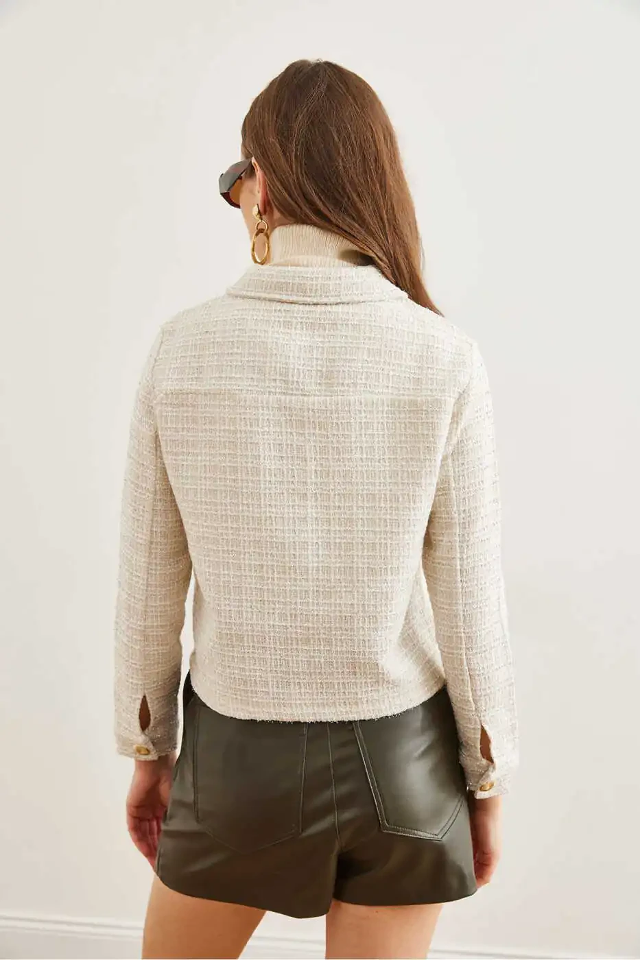 Ayollar uchun nafis va ajoyib bej rangli tvid jilet