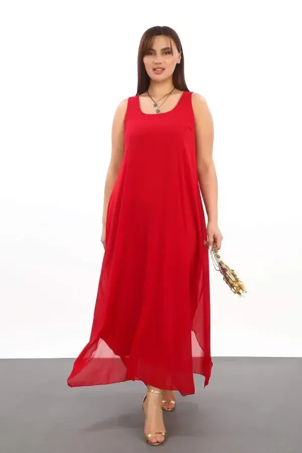 Ayollar uchun qulay kıyım Qızıl Shifon Ko'ylak | Maxsus kunlar uchun ajoyib tanlov