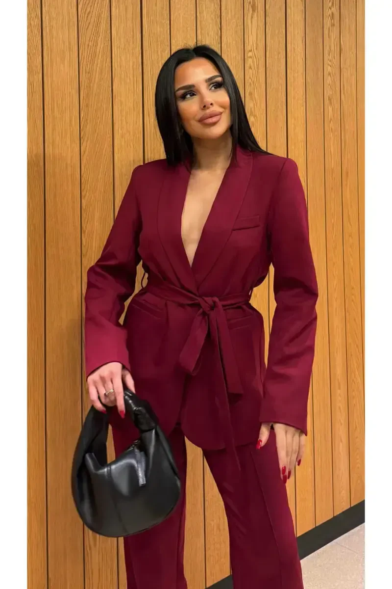 Kadın Kuşaklı Ceket Pantolon Takım Bordo-Bordo, şıklığı ve konforu bir araya getiren özel bir tasarımdır. Pembekurdelem tarafından sunulan bu takım, gardırobunuzun vazgeçilmez parçalarından biri olmaya aday. Standart boy ve regular kalıbı sayesinde gün boyu rahat bir kullanım sunarken, ceket yaka tasarımıyla şıklığınızı ön plana çıkarır. İş ortamında profesyonel bir görünüm elde etmek isteyenler için ideal bir seçimdir. Düz deseni, sade ve zarif bir stil yaratmanıza olanak tanırken, farklı aksesuarlarla kolayca kombinlenebilir. Boru paça kesimi, modern ve zamansız bir siluet oluşturarak her tür ayakkabı ile uyum sağlar. %70 pamuk ve %30 polyester karışımından üretilmiş olan bu takım, nefes alabilirlik ve dayanıklılık sunar. Yıkama talimatlarına uygun şekilde bakım yapıldığında uzun ömürlü bir kullanım deneyimi yaşatır. Menswear koleksiyonundan ilham alınarak tasarlanmış olması, erkek giyimindeki şıklığı kadın giyimine taşıyan özgün bir yaklaşımı temsil eder. Dokuma kumaş tipi, kaliteli bir hissiyat verirken, standart kol tasarımı sayesinde rahat hareket etme olanağı sağlar. Bordo rengi, takıma sofistike bir hava katarken, kuşak detayı ise belinizi vurgulayarak daha feminen bir görünüm elde etmenizi sağlar. Bu takım, hem özel günlerinizde hem de günlük kullanımda şıklığınızı tamamlayacak mükemmel bir seçenektir. Kampanya fiyatıyla sunulan bu ürünü kaçırmayın ve stilinize yeni bir soluk getirin. Unutmayın, bu üründen en fazla 10 adet sipariş verebilirsiniz. Trendyol, 10 adedin üzerindeki siparişleri iptal etme hakkını saklı tutar. Kurumsal siparişler için farklı limitler belirlenmektedir. Üründen memnun kalmazsanız, 15 gün içinde ücretsiz iade imkanından faydalanabilirsiniz. Detaylı bilgi için iade koşullarını inceleyebilirsiniz.