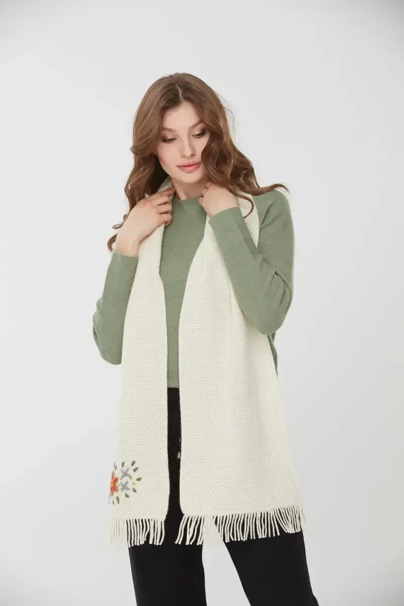 Ayollar uchun kashtali jun sharf, suyak-suyak rangi sovuq havoda uslubingizni to'ldiradigan, o'ziga xos va nafis aksessuardir. To'liq tabiiy 100% jun materialdan tayyorlangan bo'lib, yuqori issiqlik va qulaylikni ta'minlaydi. Qo'lda kashta detallari sharfga haqiqiy va badiiy teginish qo'shadi, har bir sharfni o'ziga xos qiladi. Suyak rangi har qanday kiyim bilan osonlikcha moslashtirilishi mumkin, bu abadiy nafislikni va'da qiladi. Kundalik foydalanishda ham, maxsus kunlarda ham, bu sharf sizni ham issiq tutadi, ham uslubingizni aks ettirishga yordam beradi. Yumshoq to'qimalari teringizni silaydi, engil tuzilishi esa kun bo'yi qulay foydalanishni ta'minlaydi. Sifatli ishlov berilishi va bardoshli materiali bilan uzoq yillar davomida garderobingizning ajralmas qismiga aylanadi. Sovuq qish kunlarida issiqlik va nafislikning mukammal uyg'unligini topishni istagan ayollar uchun ideal tanlovdir. O'zingizga yoki yaqinlaringizga unutilmas sovg'a berishni istasangiz, ayollar uchun kashtali jun sharf, suyak-suyak rangi ajoyib tanlovdir. Qo'l mehnati bilan yaratilgan ushbu maxsus sharf uslubingizga o'ziga xoslik qo'shadi, sovuqdan himoya qiladi va har qanday muhitda e'tiborni tortadi. Nafislik va qulaylikni birlashtirgan ushbu maxsus dizayn garderobingizning eng qimmatli qismlaridan biri bo'lishga nomzod. Har bir detalida ehtiyotkorlik va sifatni o'zida mujassam etgan ushbu sharf sizga nafaqat aksessuar, balki san'at asarini taqdim etadi. Sovuq havoda uslubingizga zarar bermasdan iliq qolish uchun ayollar uchun kashtali jun sharf, suyak-suyak rangini tanlang va farqni his eting.
