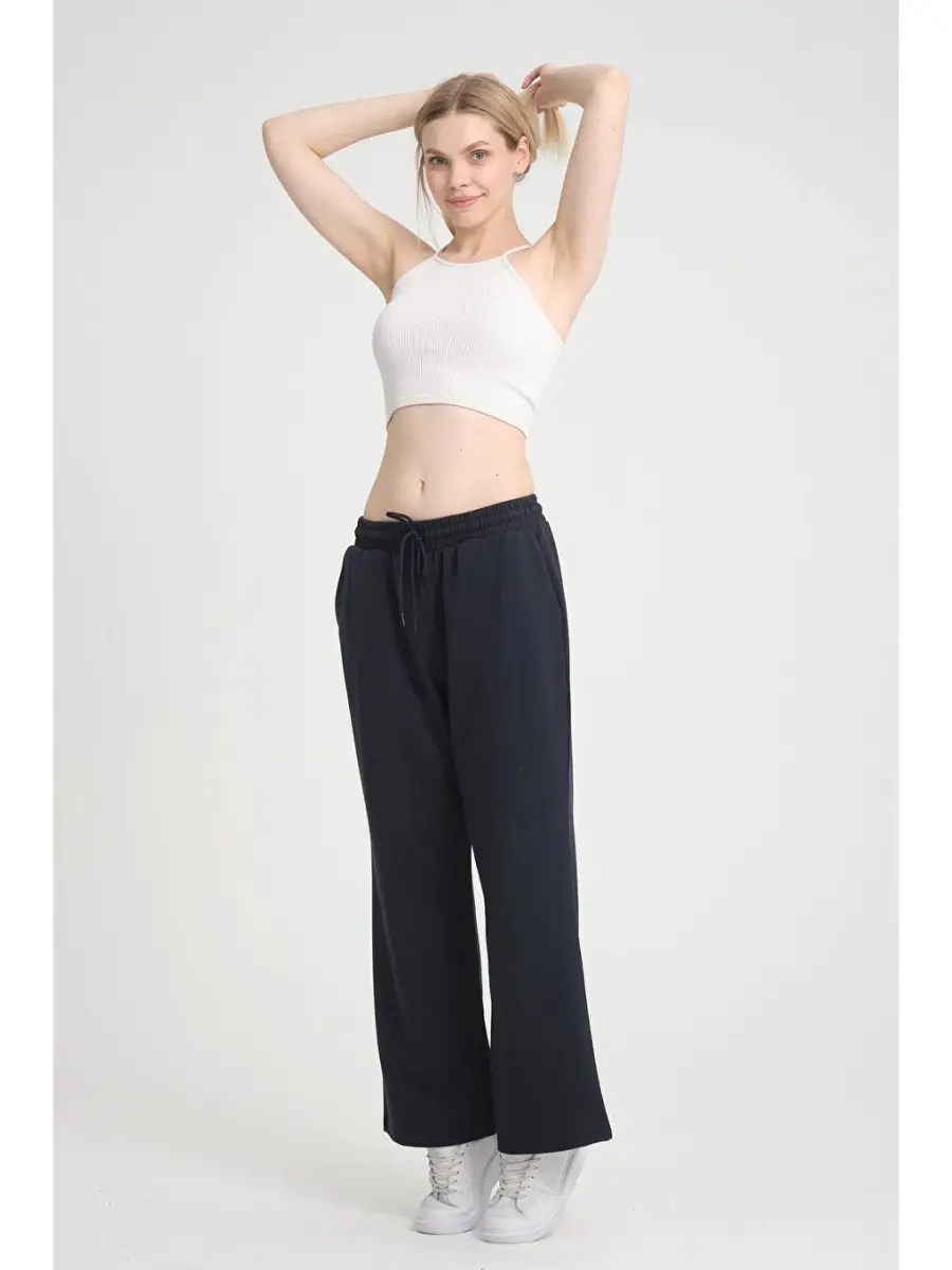 Bol paça sport shimlari, qulay bichim, baland bel, to'q ko'k sport shimlari, ayollar sport shimlari, kundalik sport shimlari, sport sport shimlari, trend sport shimlari, qulay sport shimlari, zamonaviy sport shimlari