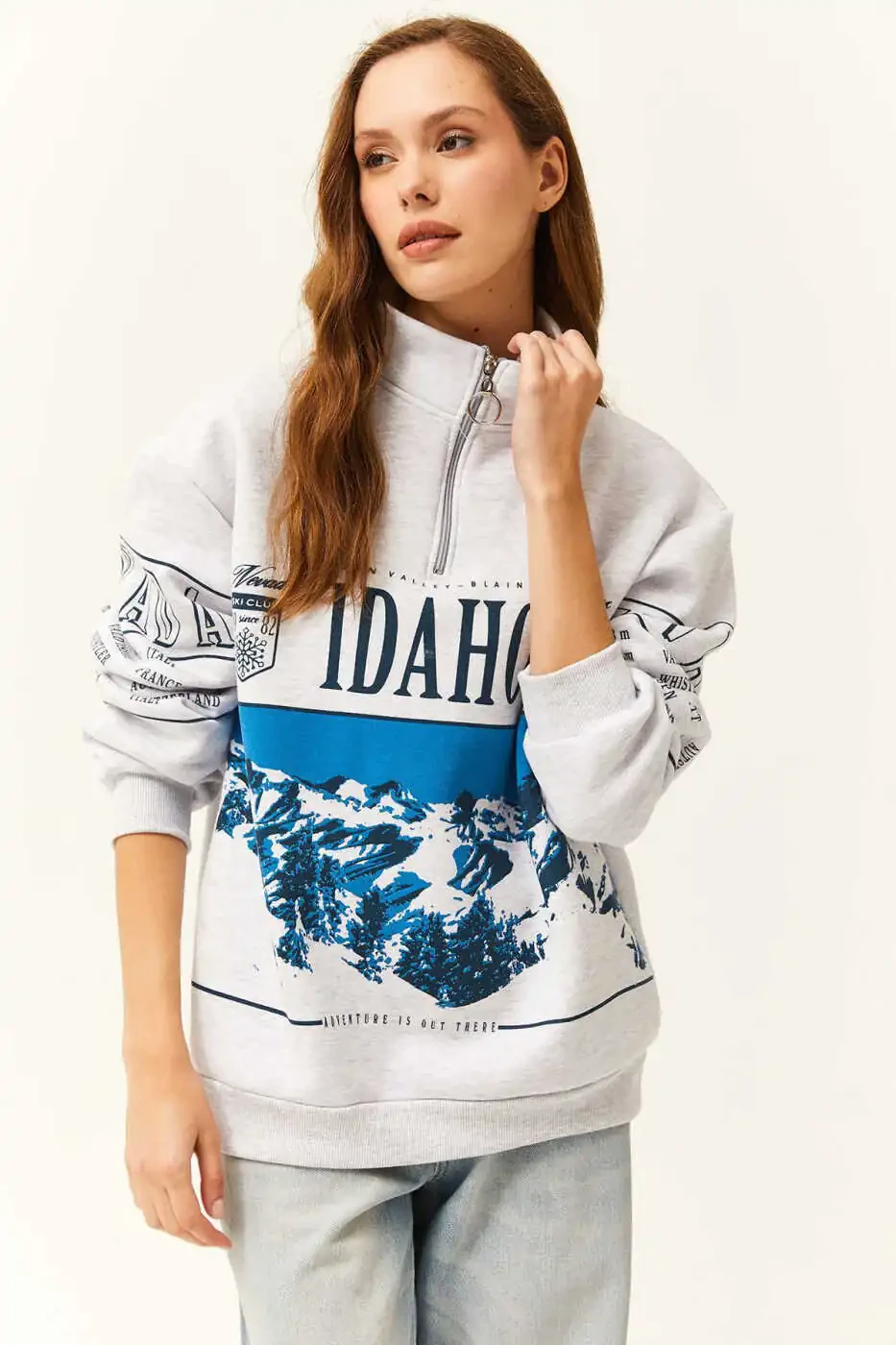 ayollar bluzi, kulrang bluza, melanj bluza, fermuarli bluza, keng bluza