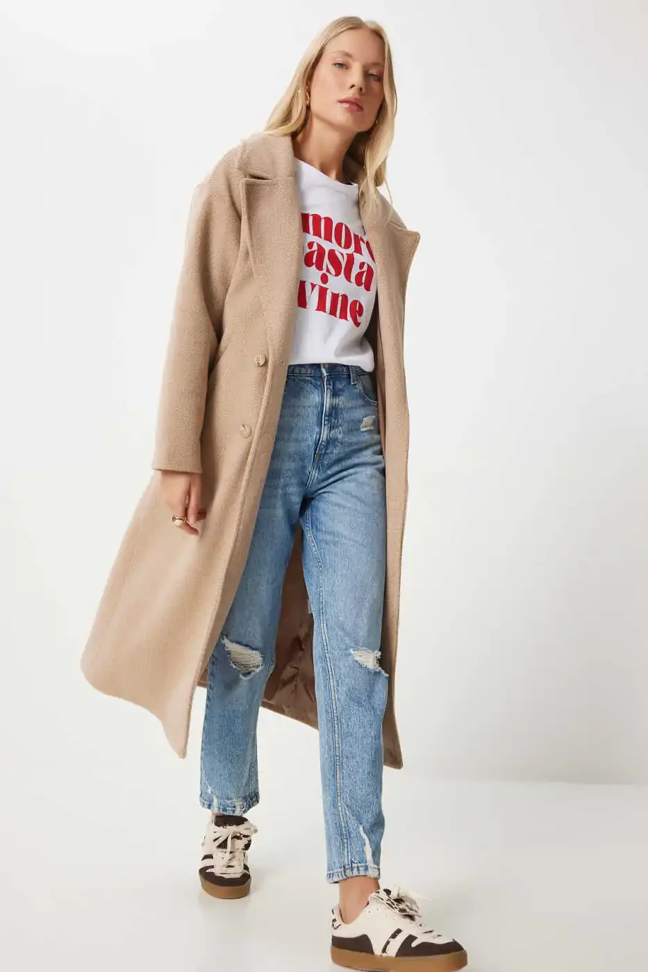Ayollar kaşmir palto: печенье кремовый крест ёқаси | Совуқдан ҳимоя