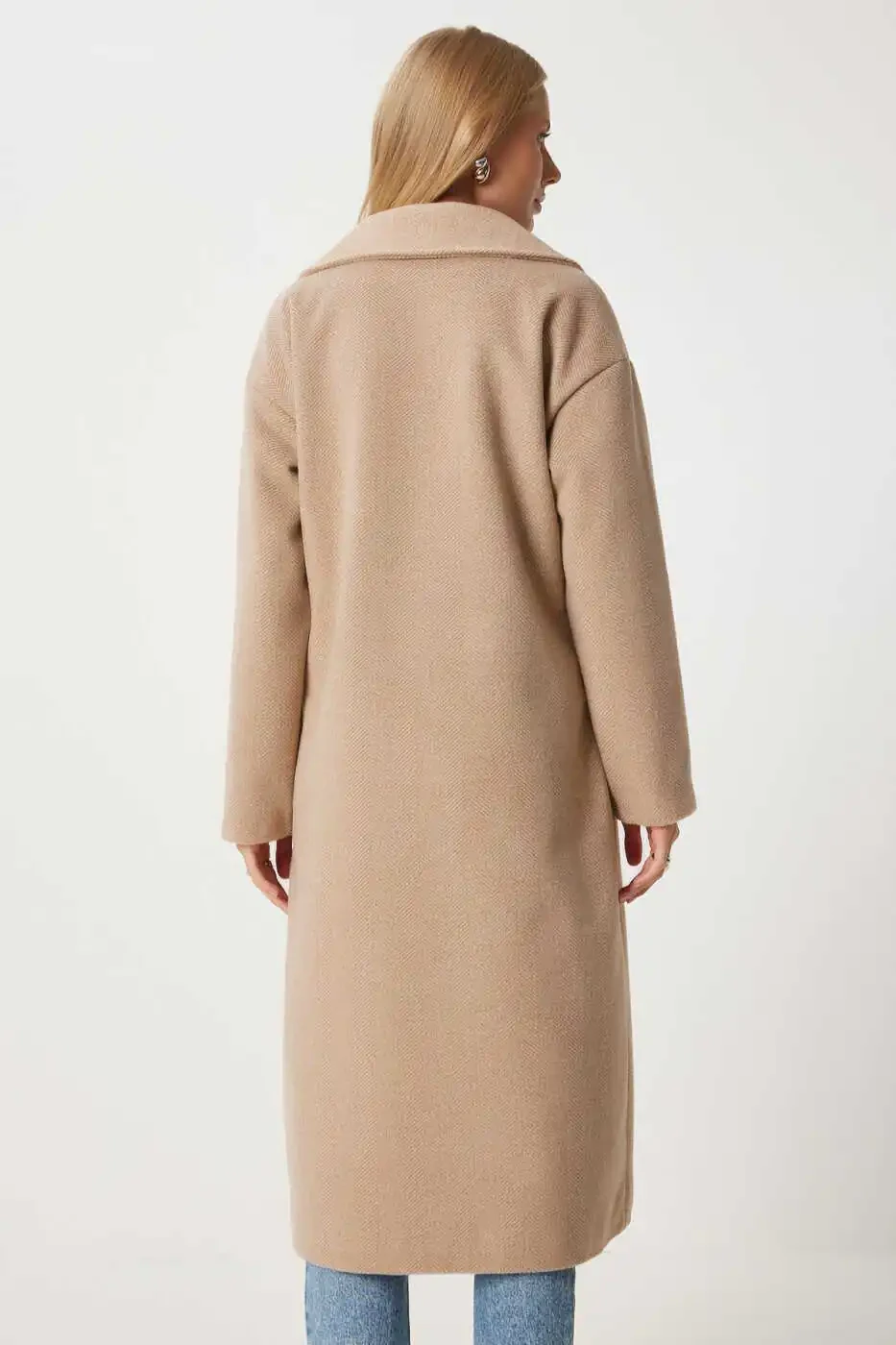 Ayollar пальтоси, кашемир пальтоси, крест-поперек ёқа, печенье ранги, қишки пальто, иссиқ тутадиган пальто, чиройли пальто, кундалик пальто, махсус кун пальтоси, аёллар кийими