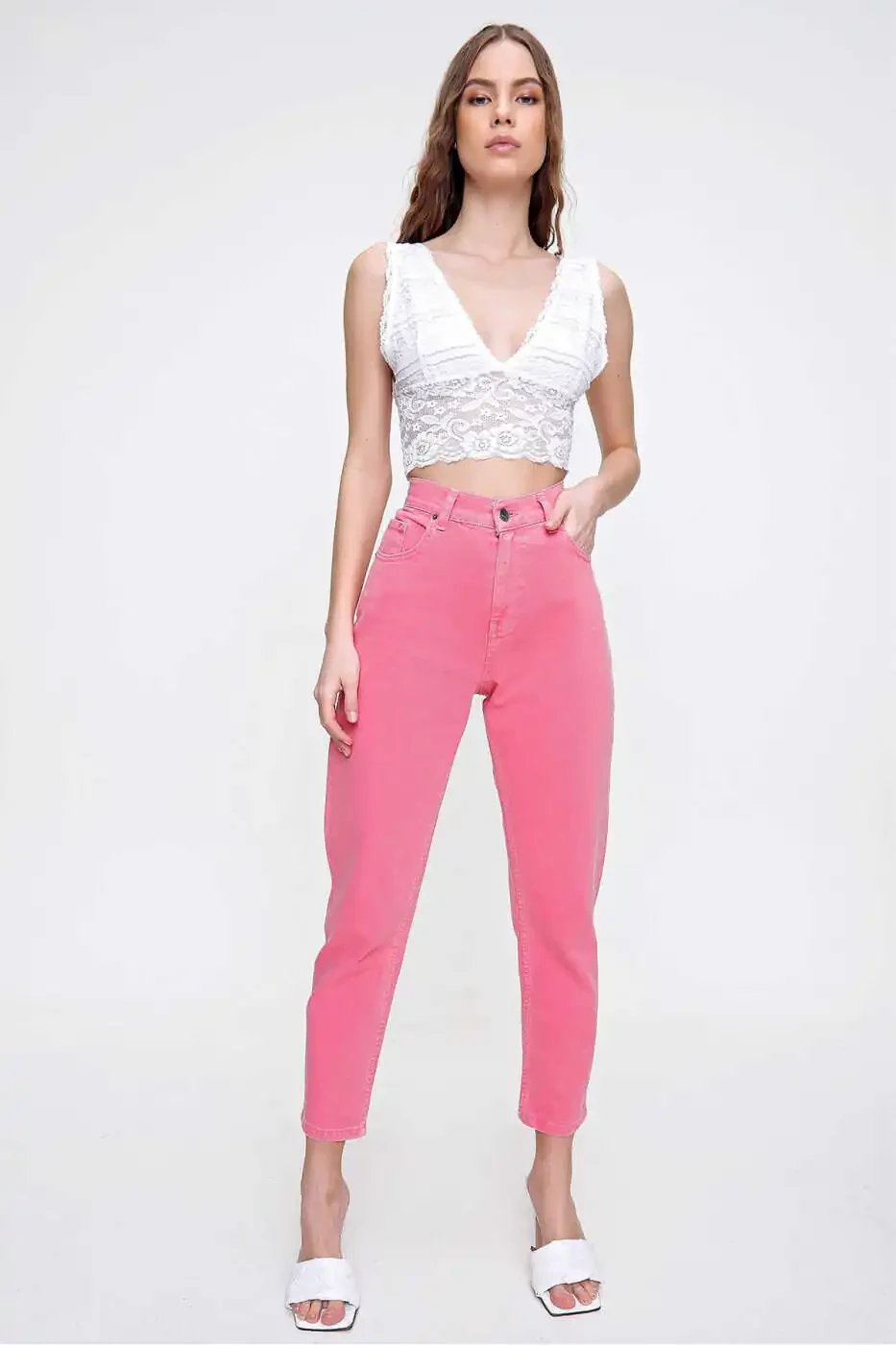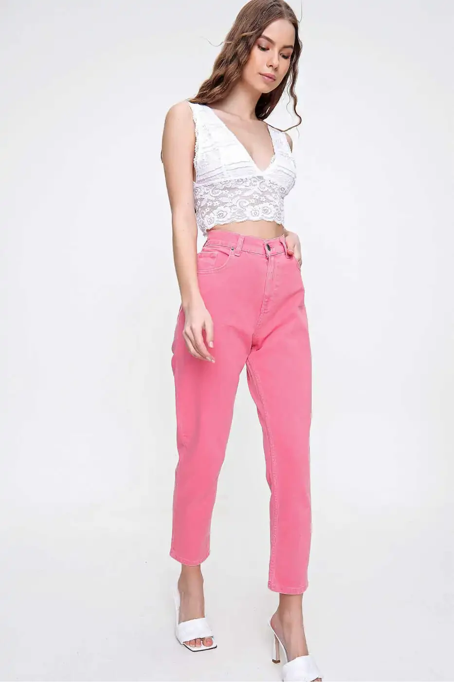 Pembe Yuksak Bel Jean | Ayollar Jean Modelleri | ALC-X6255