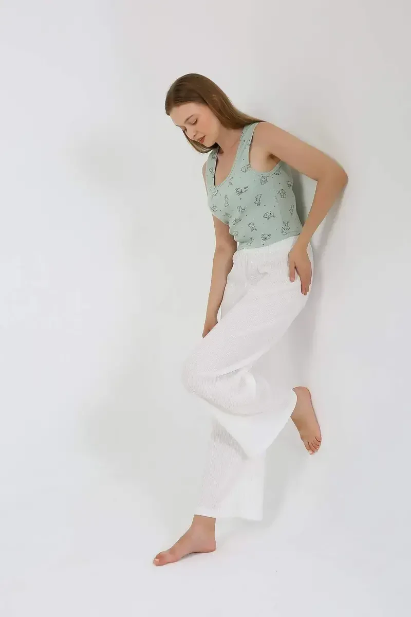 Ayollar uchun Qalin Askılı Body Bol Paça Pantolon 2'li Takım Beyaz 4219, nafaqat nafis kiyimdan ko'ra, balki o'z-o'ziga ishonchni oshiruvchi bir tajriba taqdim etadi. O'zingizni qulay va chiroyli his qilganingizda, har qadamda yanada ishonchli va energiyaga to'lasiz. Bu jamoa ham kundalik hayotingizda, ham maxsus kunlaringizda sizga hamroh bo'lib, uslubingizni eng yaxshi tarzda aks ettirishingizni ta'minlaydi.