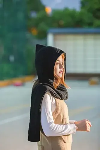 Ayollar qishki 3 in 1 kapüşonli shapka sharf ro'mol o'rash to'qilgan trikotaj sviter bo'yinbog'i