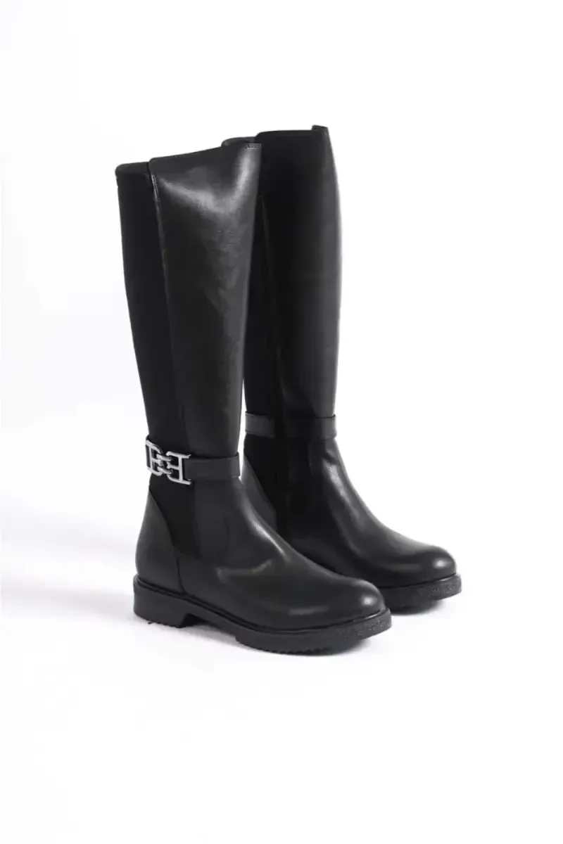 Qora fermuarli etik | Sun'iy charm poshnali qishki poyabzal