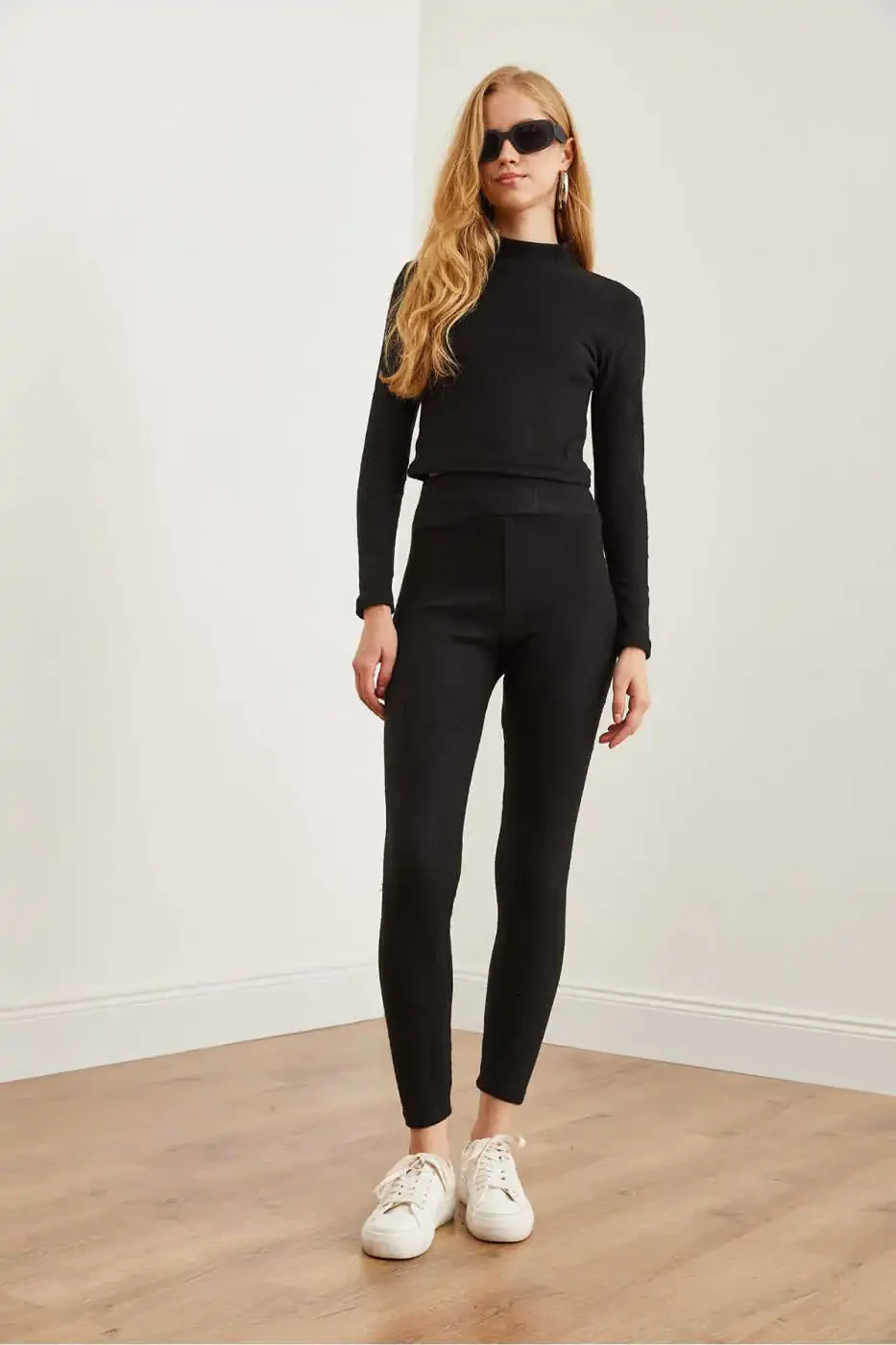 Ayollar uchun kostyum, qora rangli shnurlangan kostyum, kardushli kostyum, Trendyol kostyumi, arzon kostyum