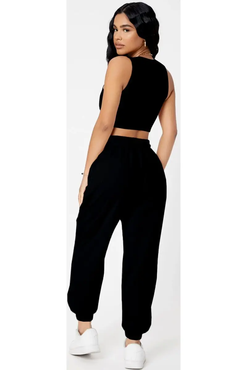 Qora baland belli jogger sport shim | Ayollar sport shimi | Qulay va zamonaviy