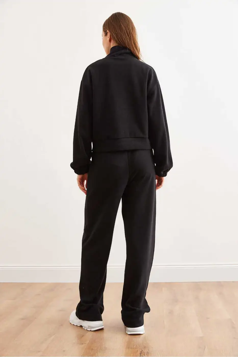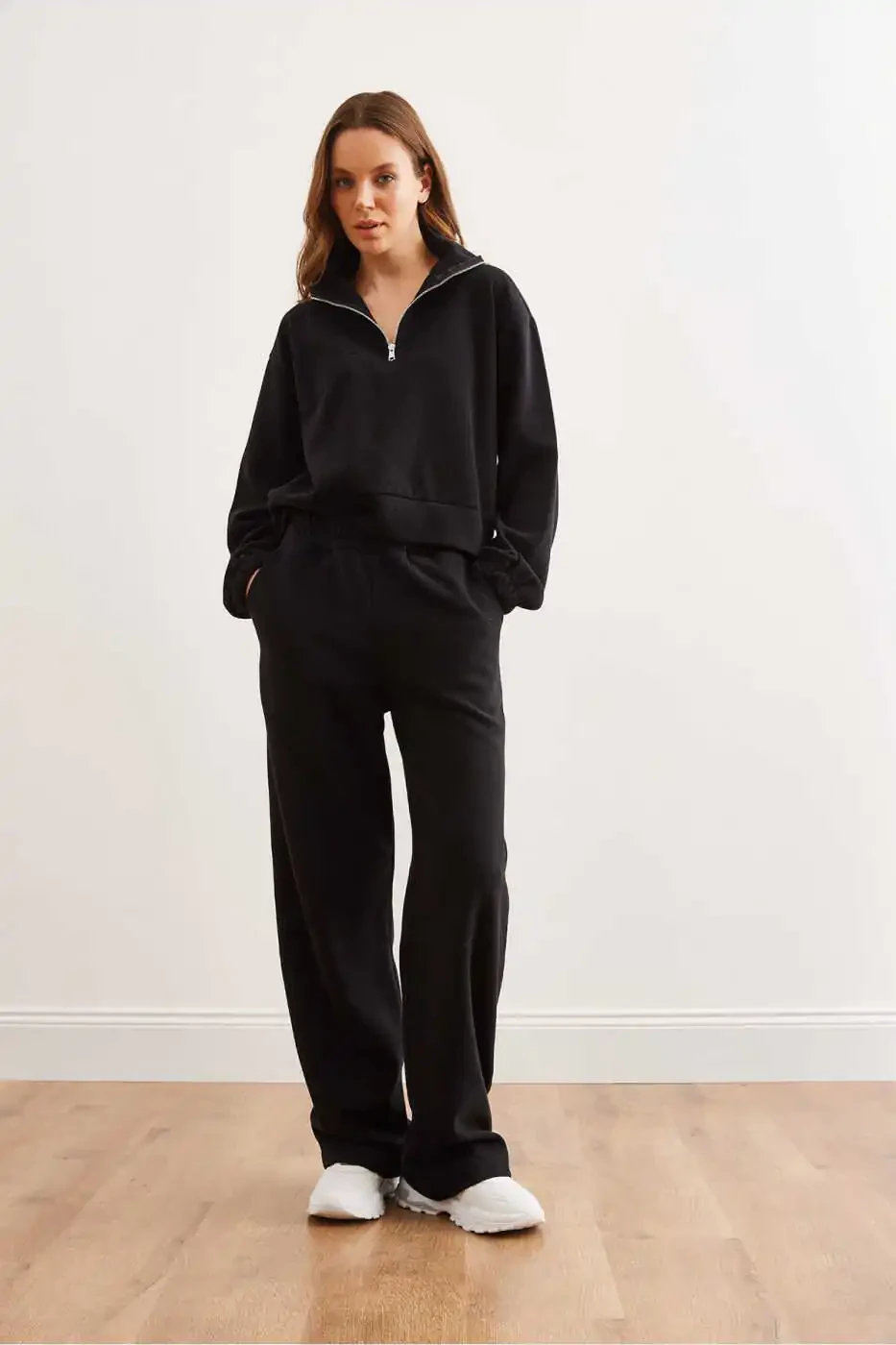Ayollar uchun qora polo yoqali yuqori va pastki to'plam | Zamonaviy va qulay
