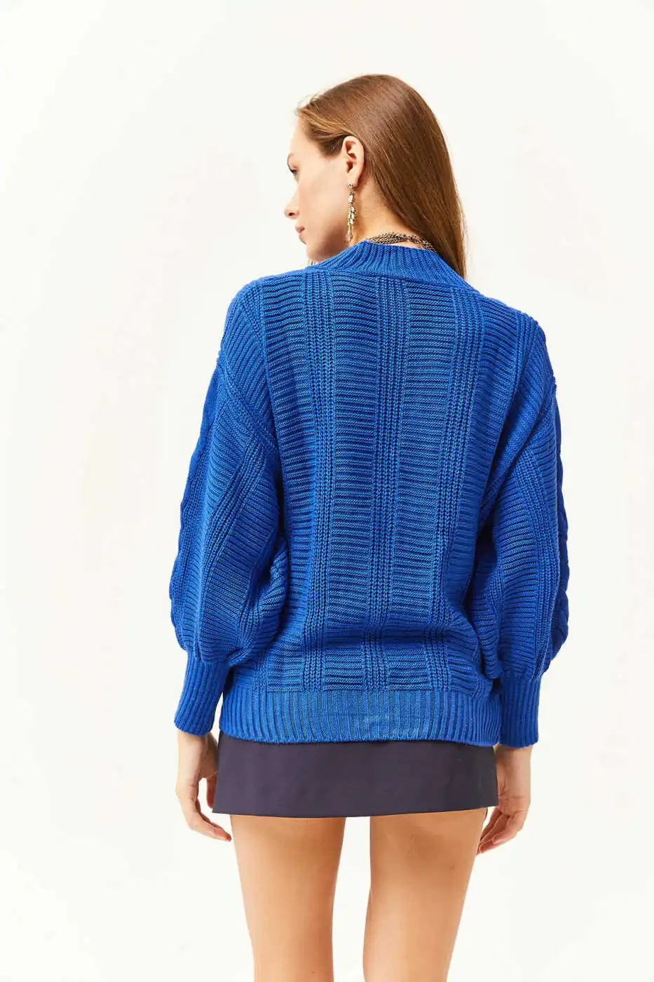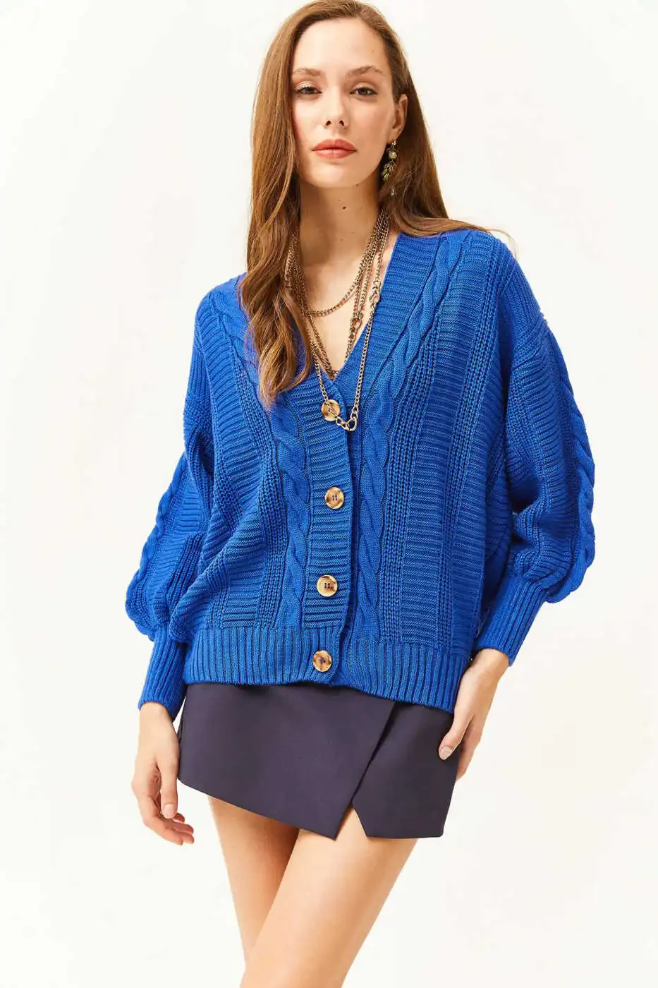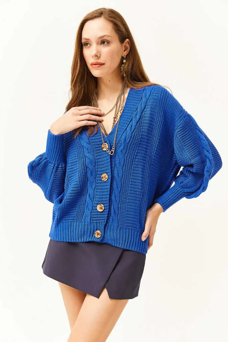Ayollar Saks Mavi Qalin Soch Orgʻi Triko Hırka bilan Uslubingizni Yangilang