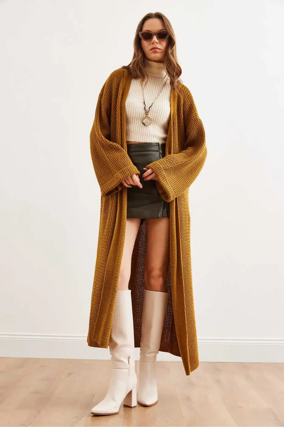 Ayollar uchun sarg'ish rangli uzun triko kardigan: qulaylik va nafislik bir arada