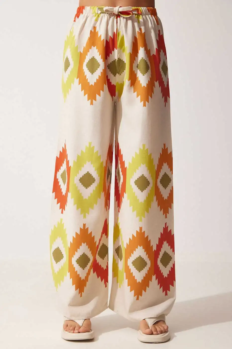 Аёллар учун сариқ крем рангли гулли зиғир матодан тикилган палаззо шим BH00385 билан замонавийлик ва қулайликни бирлаштиринг! Бу жозибали шим жонли сариқ крем ранглари ва нафис гул нақши билан гардеробингизнинг янги севимлиси бўлишга тайёр. Юмшоқ ва нафас олувчи тузилиши билан кун бўйи қулайлик бағишлаб, замонавий дизайни билан ҳар қандай муҳитда ўз услубингизни намоён этишингизни таъминлайди. Ҳам кундалик фойдаланиш учун, ҳам байрам кунларида услубингизни тўлдирувчи бу палаззо шим кенг оёқли ва эркин кесими билан эркин ҳаракатланиш имкониятини беради. Ўртача қалинликдаги матоси туфайли мавсум ўзгаришларида ҳам идеал танловдир. 50% пахта ва 50% зиғирдан тайёрланган шим юқори сифат ва чидамлиликни таъминлайди. Осон парвариши ва узоқ муддатли фойдаланиши билан сизни қониқтиради. 21-40 ёш оралиғидаги аёллар учун махсус яратилган кенг ўлчамли тармоғи билан ҳар қандай бадантарҳга мукаммал мос келади. Wide leg силуэти ва замонавий дизайни билан замонавий ва нафис кўринишга эга бўлишингизни таъминлайди. Пойабзал танлашингизда ҳам эркинлик берадиган кенг оёқлари билан комбинацияларингизга бошқача ўлчам қўшинг. Бу махсус палаззо шимни дарров сабатингизга қўшинг ва услубингизни юқори даражага кўтаринг!