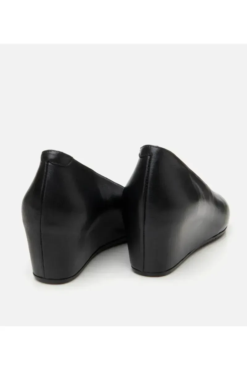 ayollar charm poyabzali, qora to'ldirilgan poshnali, haqiqiy charm poyabzal, bog'ichsiz poyabzal, qulay poyabzal, zamonaviy ayollar poyabzali, zamonaviy poyabzal, kundalik poyabzal, maxsus kun poyabzali, sirpanmaydigan taglikli poyabzal