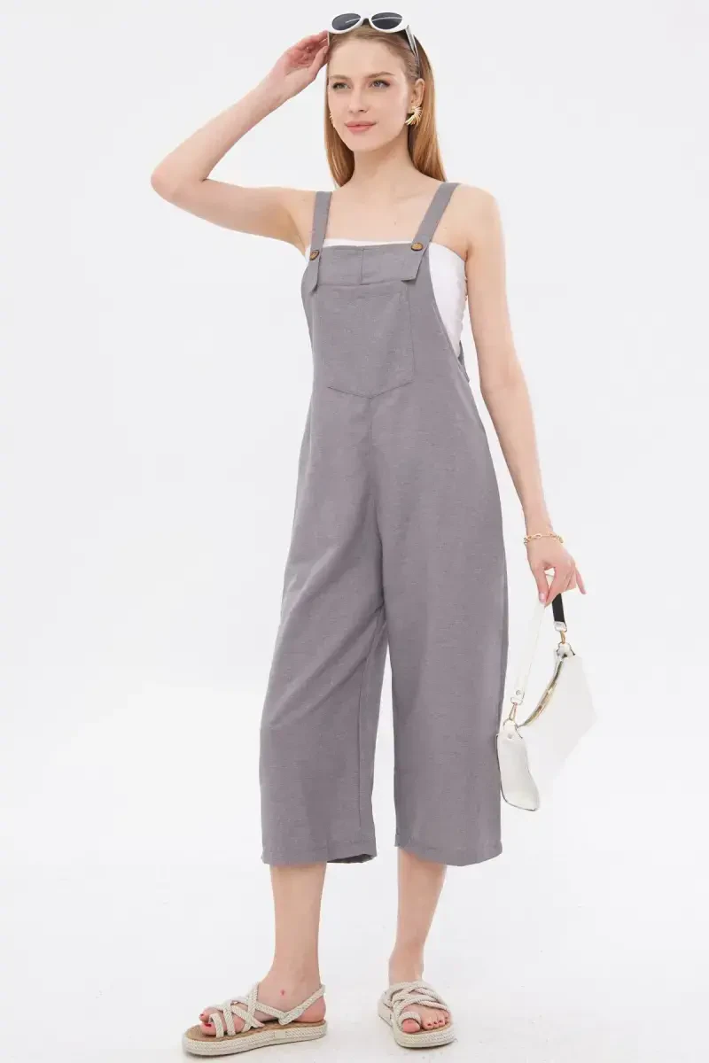 Ayollar kombinezoni, bog'bon kombinezoni, to'q kulrang kombinezon, qulay kombinezon, zamonaviy kombinezon, kundalik kombinezon, zamonaviy kombinezon, sozlanishi kombinezon, cho'ntakli kombinezon, kombinatsiyalanadigan kombinezon