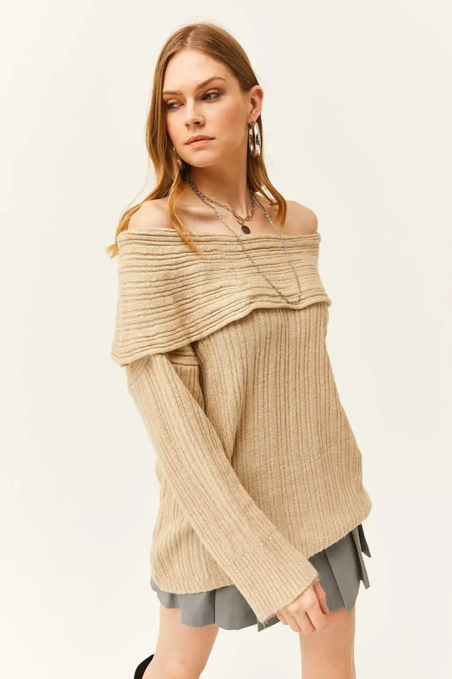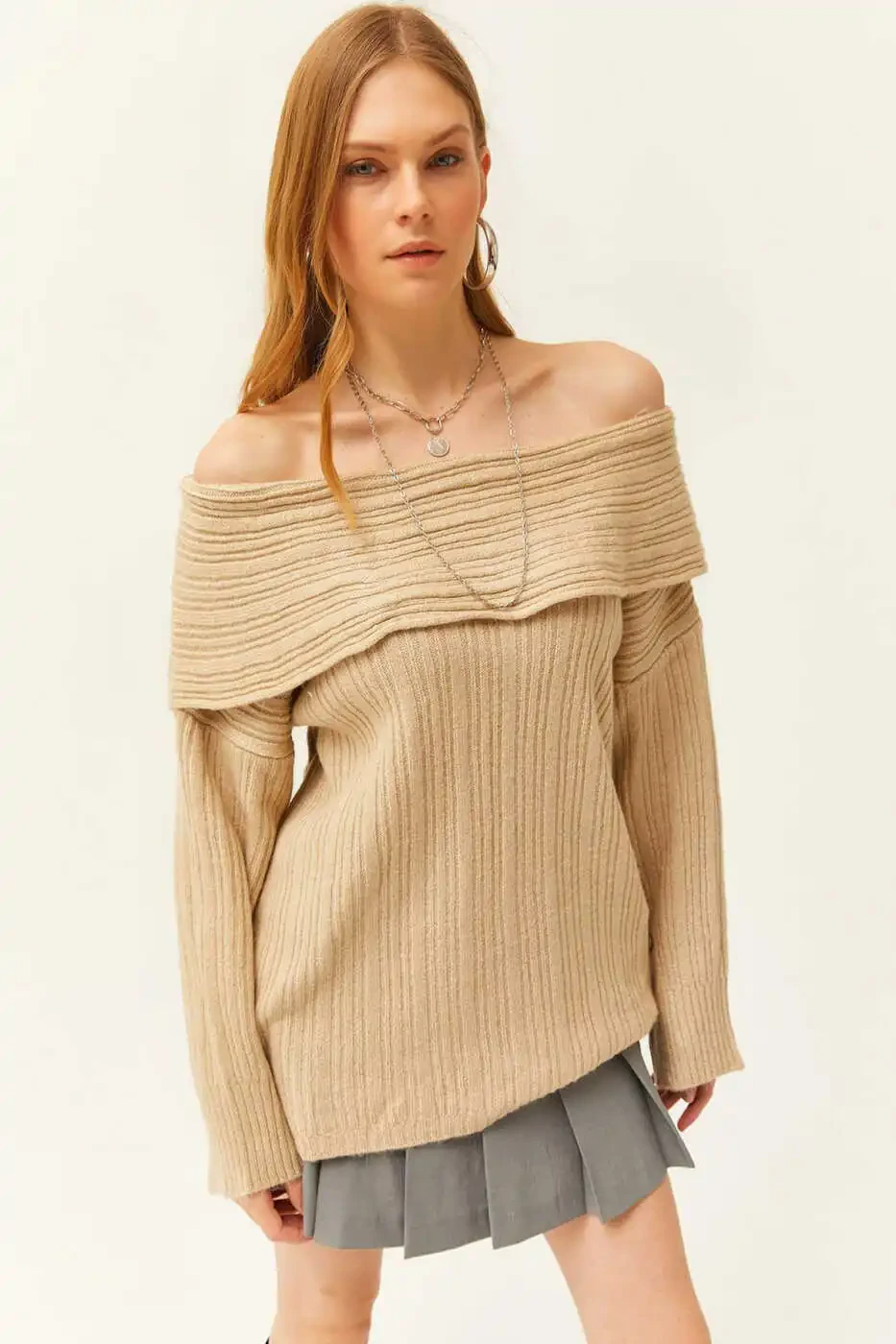 Ayollar triko kozog'i, 100% akril, tosh madonna yoqasi, qulay, zamonaviy, kundalik, yumshoq, 100% akril triko kozog'i, bo'sh kesim, standart o'lcham, har xil rang variantlari, Trendyol