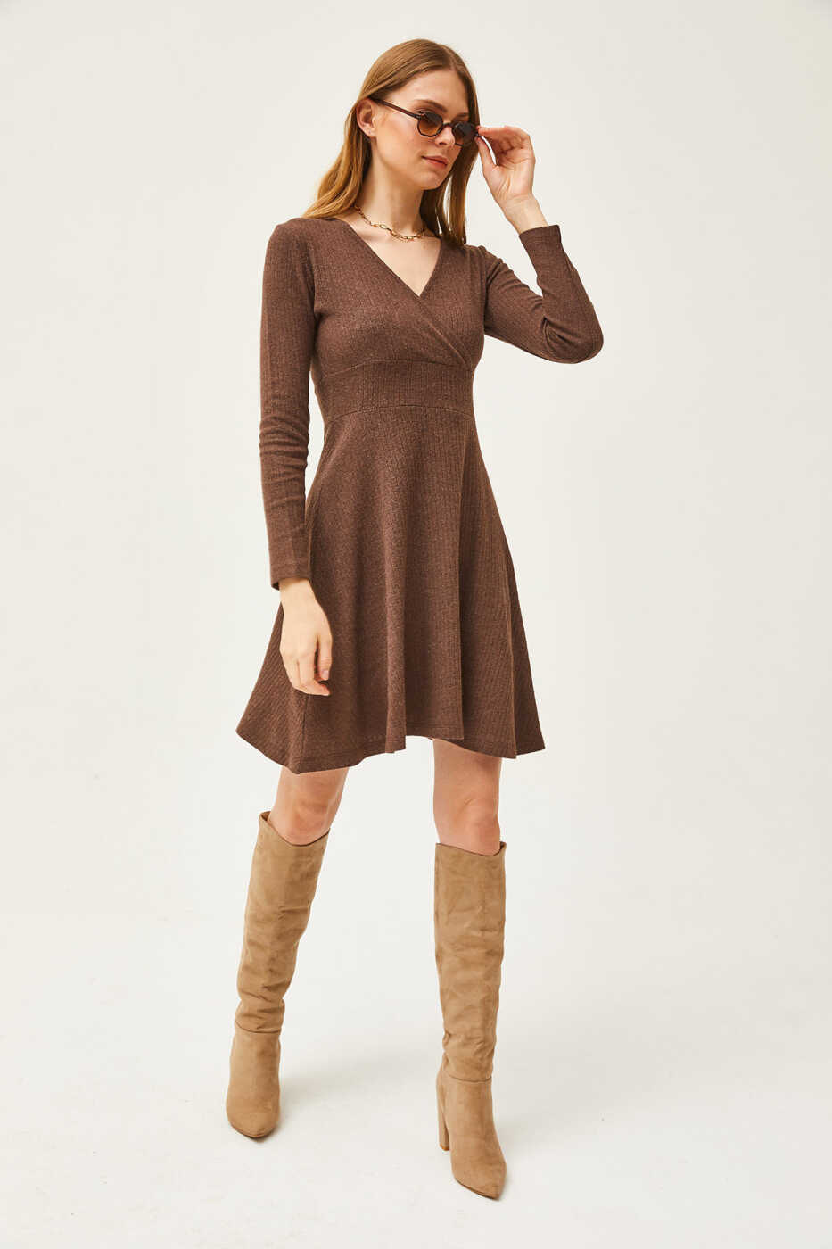Uslub va qulaylikni birlashtirgan bu mini yubka bilan o'zingizni ifoda eting! Achchiq qahva rangi o'zining zamonaviyligi bilan har qanday mavsumda sizning garderobingizning ajralmas qismiga aylanadi. V bo'yin va jingalak tafsilotlar yubkaga zamonaviy va ayollikni beradi. Mini uzunligi oyoqlaringizni ta'kidlab, sizni yanada jozibador ko'rsatadi. Kunlik kombinatsiyalaringizda sport poyafzallari bilan qulay ko'rinish yaratishingiz mumkin yoki kechki tadbirlar uchun baland poshnali poyafzallar bilan o'zingizni oqlangan ko'rinishga solib olishingiz mumkin. Kunlik foydalanish va maxsus kunlar uchun ham ideal bo'lgan bu yubka har qanday muhitga moslashadi va sizning uslubingizni aks ettiradi.