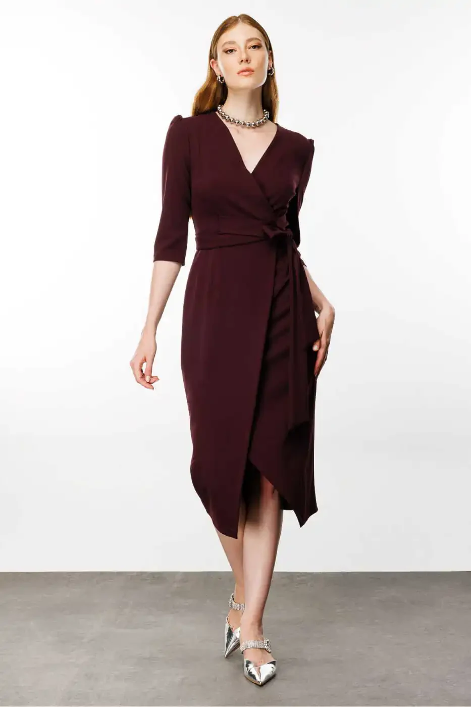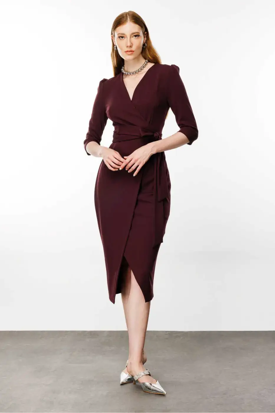 **Ayollar uchun binafsha rangli o'rash libosi**Bizning ajoyib binafsha rangli o'rash libosimiz bilan o'zingizning uslubingizni yuqori darajaga ko'taring. Bu libosim o'zining noyob uslubi bilan tantanali tadbirlarda yoki kundalik hayotingizda diqqatni tortadi.**Xususiyatlari:*** 100% paxta, poliester va elastan aralashmasi* Tugmali fermuar yopilishi* To'g'ri kesilgan* Oddiy kalıp* Krepe to'qilgan* O'rash yaxa* Midi uzunligi* Uzun yenglar**Foydasi:*** Cho'zilib qulay mato kun davomida qulaylikni ta'minlaydi.* Oddiy va jozibali dizayni har qanday kiyim bilan uyg'unlashadi.* Oddiy kalıp tanangizning egri chiziqlariga moslashadi, lekin sizni siqmaydi.* Bardoshli krep to'qilganligi uzoq umr beradi.* O'rash yaxa tafsilotlari zamonaviy va murakkab ko'rinish yaratadi.* Midi uzunligi ko'p qirrali bo'lib, ham kundalik, ham tantanali tadbirlar uchun mos keladi.* Uzun yenglar o'tish davrlarida himoya qiladi va zamonaviy ko'rinish beradi.* Klassik dizayni har qanday tadbir uchun mos keladi, o'zgarmasdan jozibali ko'rinishga ega bo'ladi.**Qo'shimcha ma'lumotlar:*** Buyurtma limiti: 10 dona* Bepul qaytarish: 15 kun* Tez yetkazib berish imkoniyati mavjud* Turli sotuvchilardan sotib olish mumkin