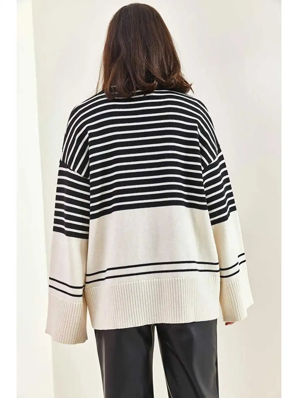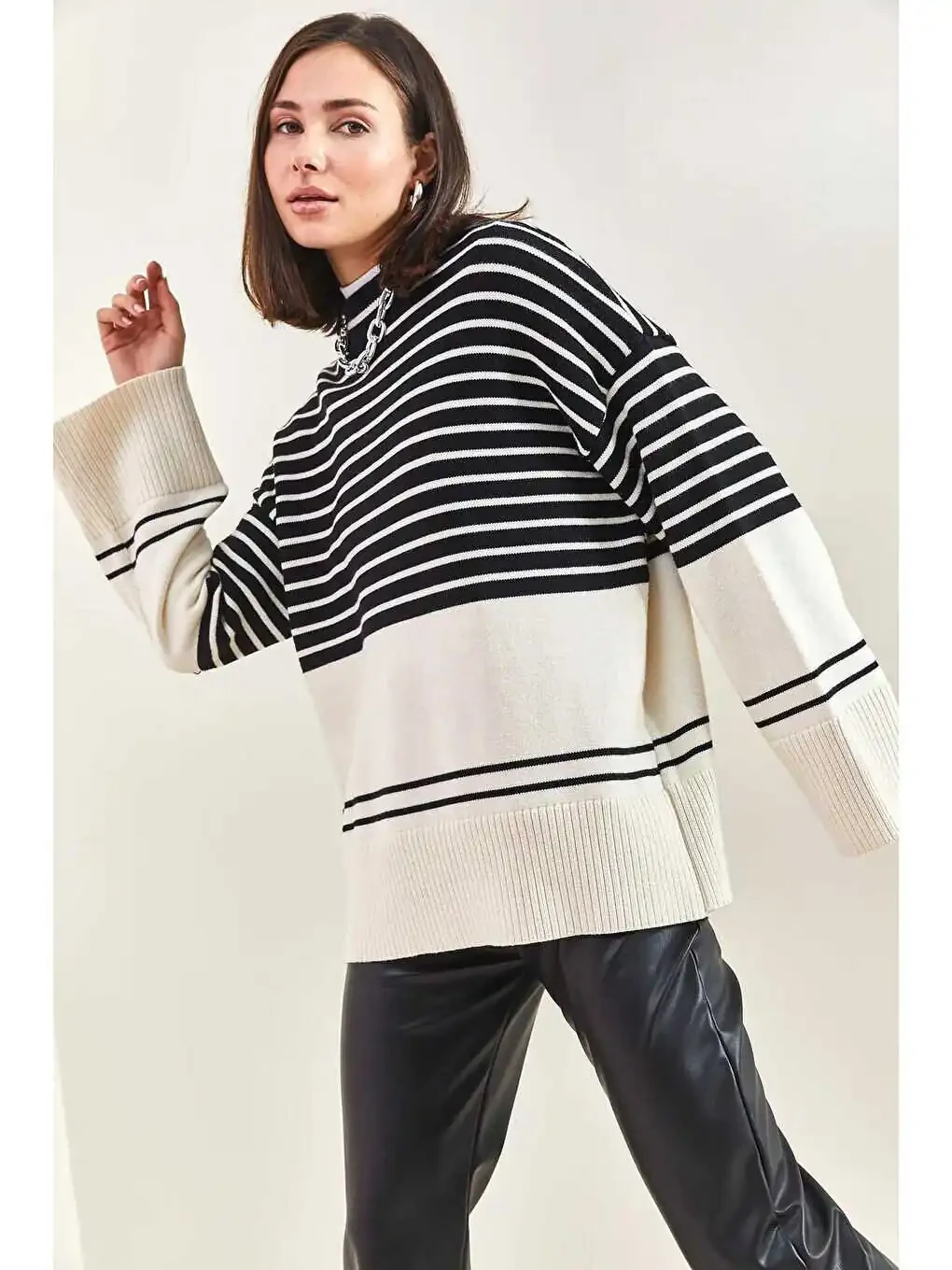Ayollar uchun chiziqli trikotaj sviterni hoziroq buyurtma qiling va uslubingizga uslub va qulaylik qo'shing!