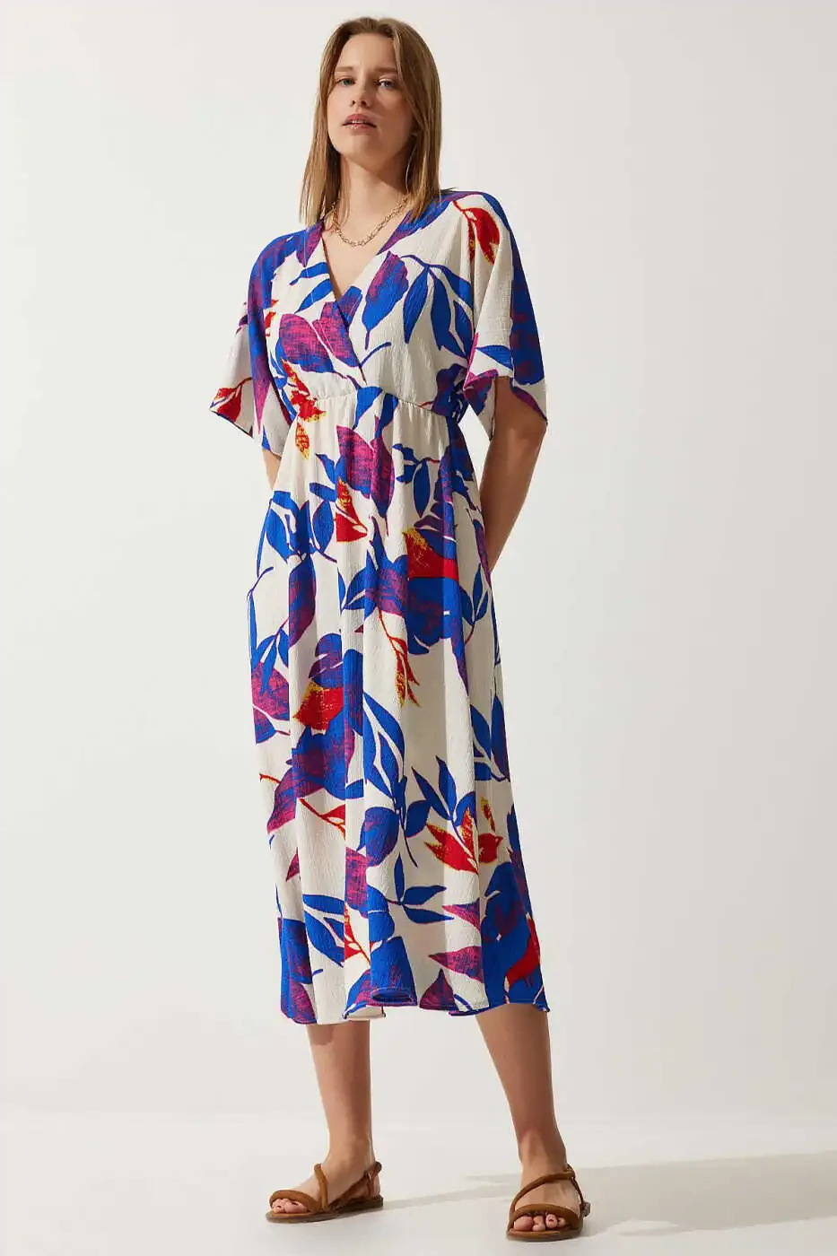 Ayollar uchun Ekru Movi Konvert Yaka Naqshli Triko Ko'ylak DK00167 zamonaviy va oqlangan ko'rinish izlayotgan ayollar uchun ajoyib tanlovdir. Bu ko'ylak o'zining nafis dizayni, qulay matosi va ko'zni qamashtiruvchi naqshlari bilan sizning garderobingizning ajralmas qismiga aylanadi. Velosiped yoqasi sifatida ham tanilgan konvert yoqasi zamonaviy qiyofa bag'ishlaydi, ekru va movi ranglarning uyg'unligi har qanday kombinatsiya uchun ideal zamin yaratadi. Triko matoning yumshoq teksturasi kun bo'yi qulay kiyinish tajribasini taqdim etadi. 95% poliester va 5% elastan aralashmasi tufayli ko'ylak tanangizga mukammal darajada o'tiradi va harakat erkinligingizni cheklamaydi. Elastik tuzilishi kun davomida bemalol harakatlanishingizni ta'minlaydi va har qanday o'lchamga mos keladi. Balon yeng detali ko'ylakka trend qo'shadi, uzun kesimi esa nafis va oqlangan qiyofa yaratadi. Konvert silueti ayollik chiziqlarini ta'kidlab, tana chiziqlarini muloyimlik bilan o'rab oladi. Bosma naqsh ko'ylakka dinamik va jonli qiyofa bag'ishlaydi. Ekru rangi har mavsumda va har qanday aksessuarlar bilan osongina mos keladi. Bu ko'ylakni kundalik hayotda ham, maxsus kunlarda ham bemalol kiyishingiz mumkin. Baland poshnali poyabzal va oqlangan sumka bilan birga kiyib, maxsus tadbirda ko'zni qamashtirishingiz yoki sport poyabzali va kundalik sumka bilan birga kiyib, qulay va oqlangan kundalik qiyofa yaratishingiz mumkin. Ayollar uchun Ekru Movi Konvert Yaka Naqshli Triko Ko'ylak DK00167 nafislik va qulaylikni birlashtirgan holda zamonaviy ayollar uchun ideal tanlovdir. Trendyol kafolati bilan sotib olishingiz mumkin bo'lgan bu ko'ylak sifatli matosi va puxta ishlanganligi bilan uzoq vaqt davomida garderobingizda o'z o'rnini saqlab qoladi. Bundan tashqari, ushbu mahsulot cheklangan miqdorda mavjud! Aksiya narxidan foydalanish va bu oqlangan ko'ylakka ega bo'lish uchun hoziroq buyurtma bering!