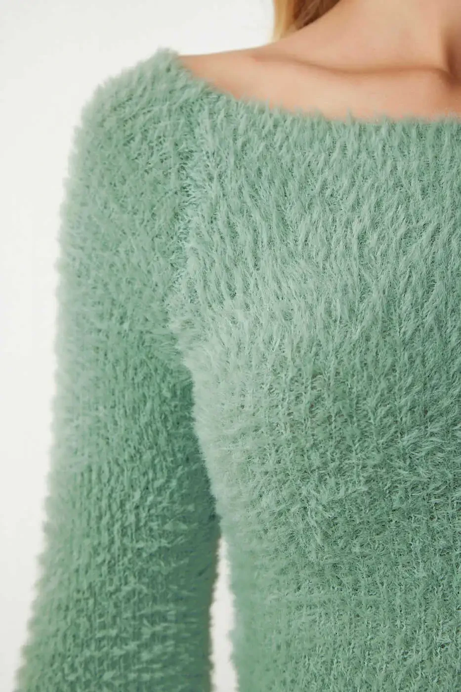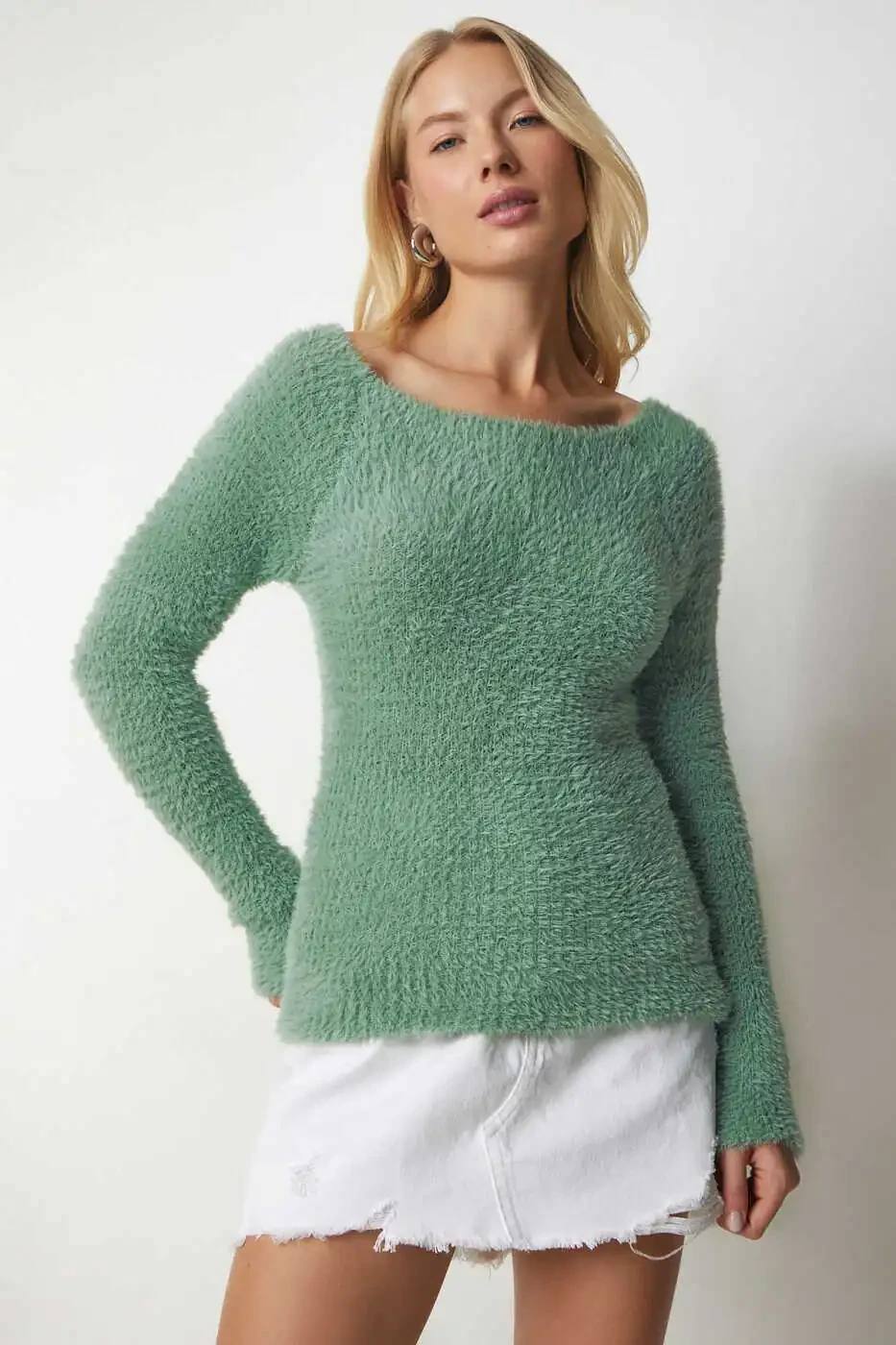 Buyurtmangizni hoziroq bering va Yashil Rangli Qayiq Yaka Sakkizli Triko Ko'ylagi bilan uslubingizni gapirtiring!