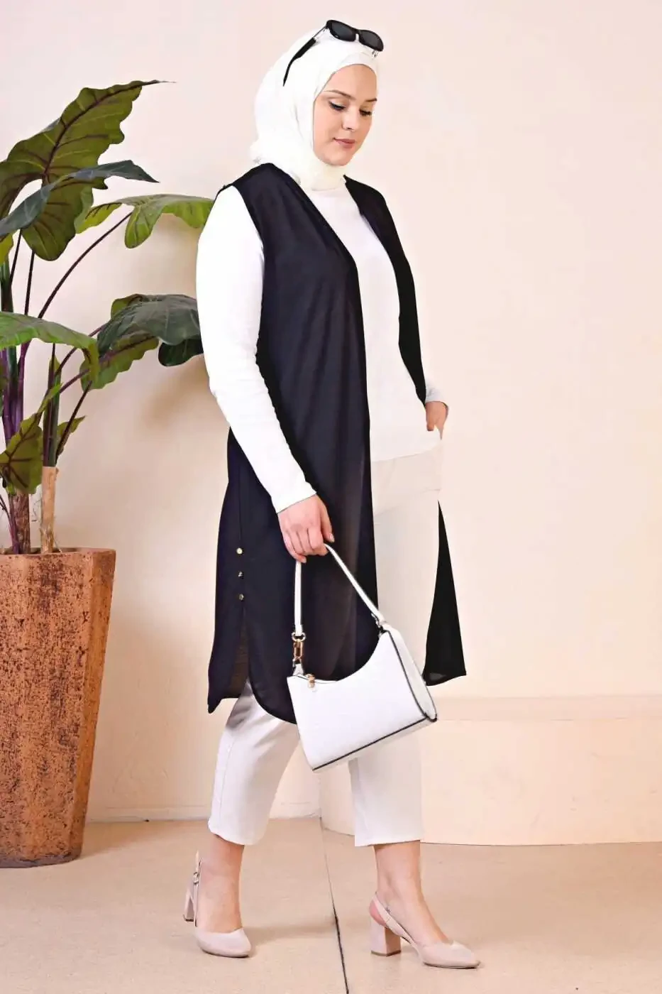 Yoz oylarida ham zamonaviy, ham qulay bo'lishni istagan onalar uchun ideal tanlov bo'lgan katta hajmli yozgi ona yelek, kundalik hayotingizda qulaylik va uslubni birlashtiradi. Hijob kiyim tushunchasi bilan ishlab chiqilgan bu yelek ham uslub, ham qulaylikni birinchi o'ringa qo'yadi. Nafa oladigan matoni yozgi issiqda salqin bo'lishingizga yordam beradi, keng kesimi esa harakat erkinligingizni cheklamasdan qulay foydalanishni ta'minlaydi.