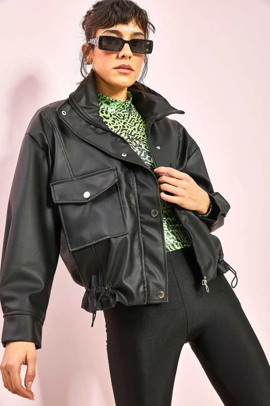 Ayollar uchun ikkita katta cho‘ntakli charm kurtka bilan uslubingizni oshiring, stil va amaliylikni birgalikda boshdan kechiring! Hoziroq buyurtma bering va darhol yetkazib bering.