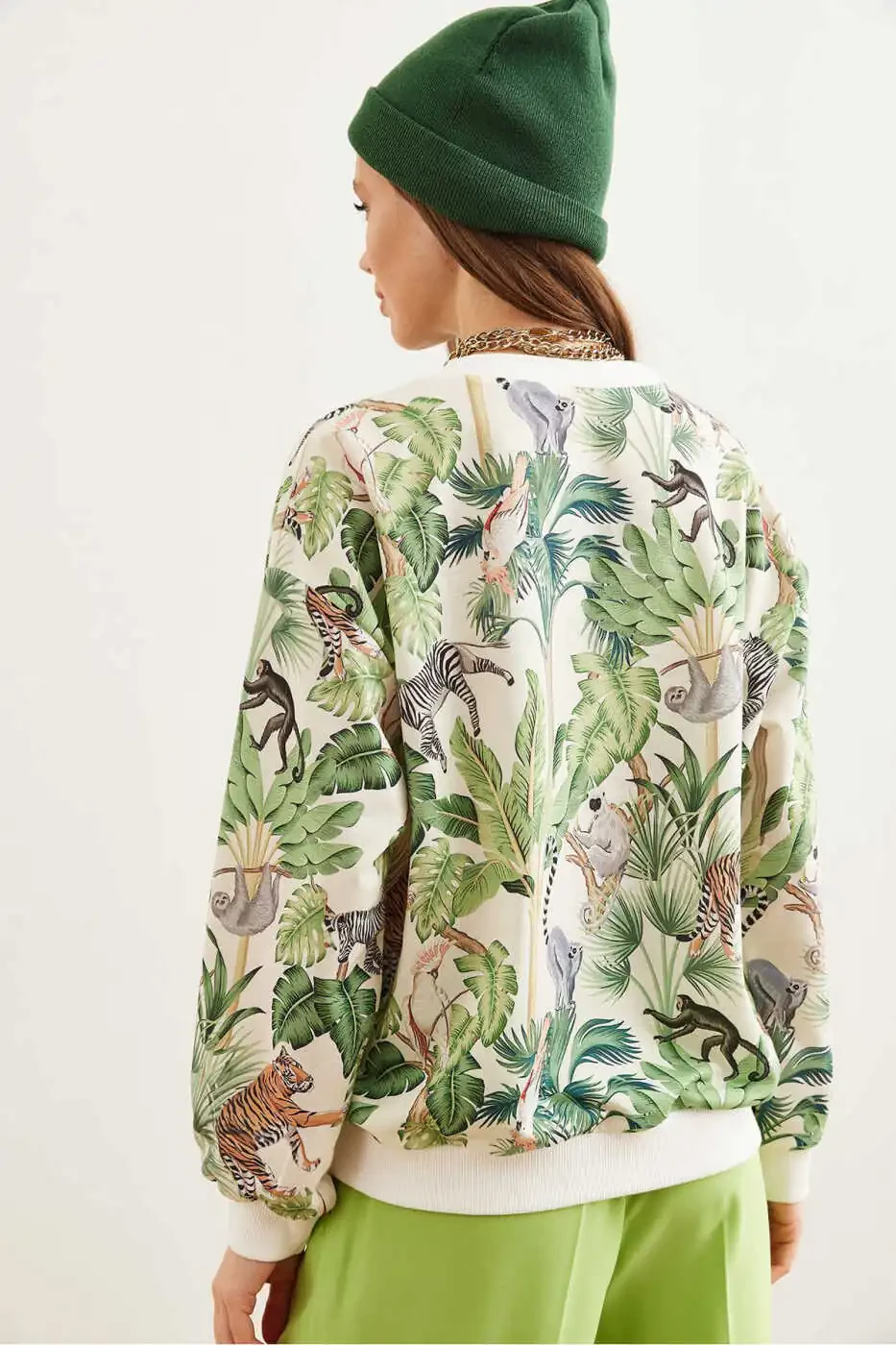 Ayollar Jungle Ekru Basic Svitshoti | 70% Paxta 30% Poliester | Qulay va Yumshoq