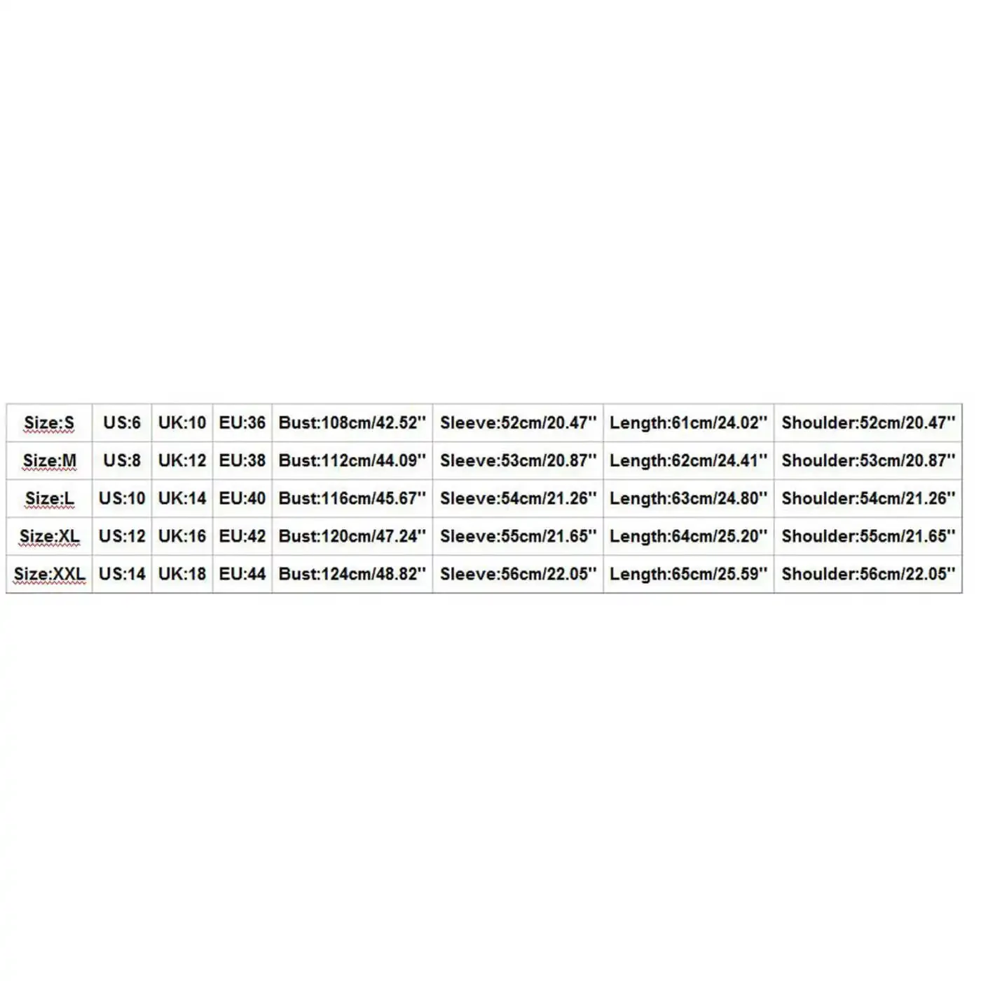 Iltimos, buyurtma berishdan oldin o'lcham jadvaliga qarang.
