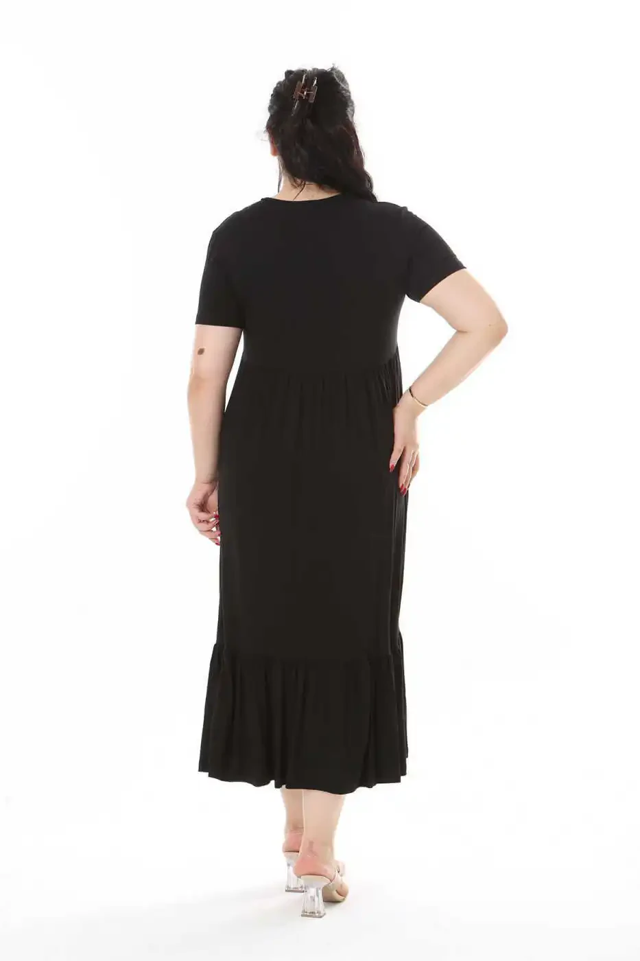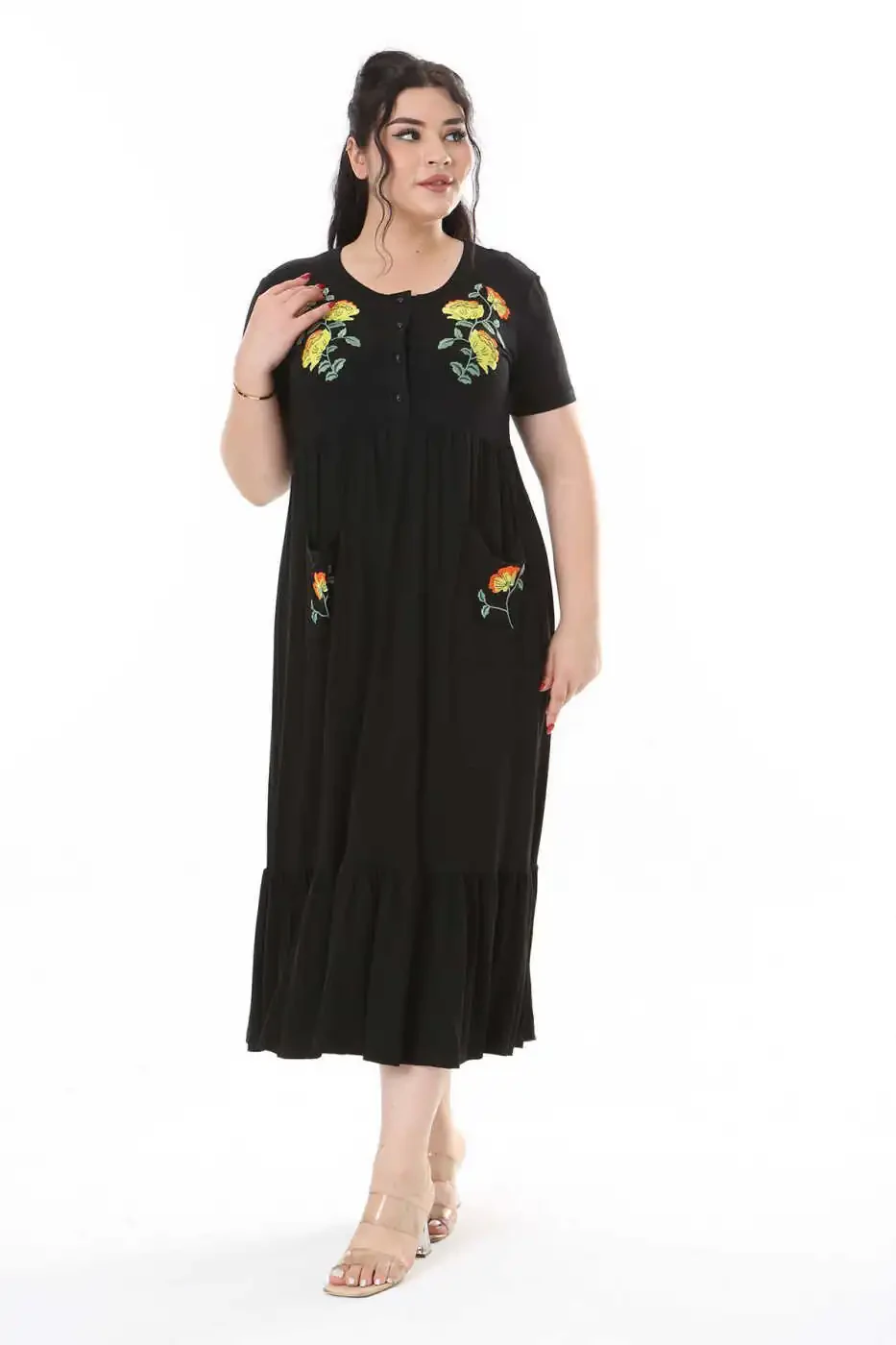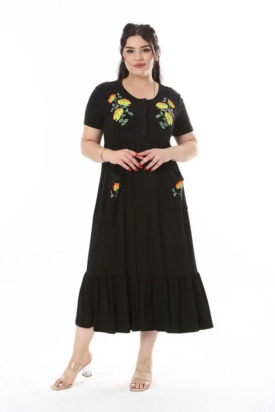 Mavsumning eng muhim elementi, katta o'lchamli ayollar uchun maxsus ishlab chiqilgan, qora rangdagi tikilgan tafsilotlarga ega oldingi qopqoq tugmalari bilan bezatilgan ko'ylagimiz bilan tanishing! Nozik va nazokatli siluetga ega bo'lgan bu ko'ylak har bir o'lchamda bo'lgan ayolni o'ziga maftun etadi.