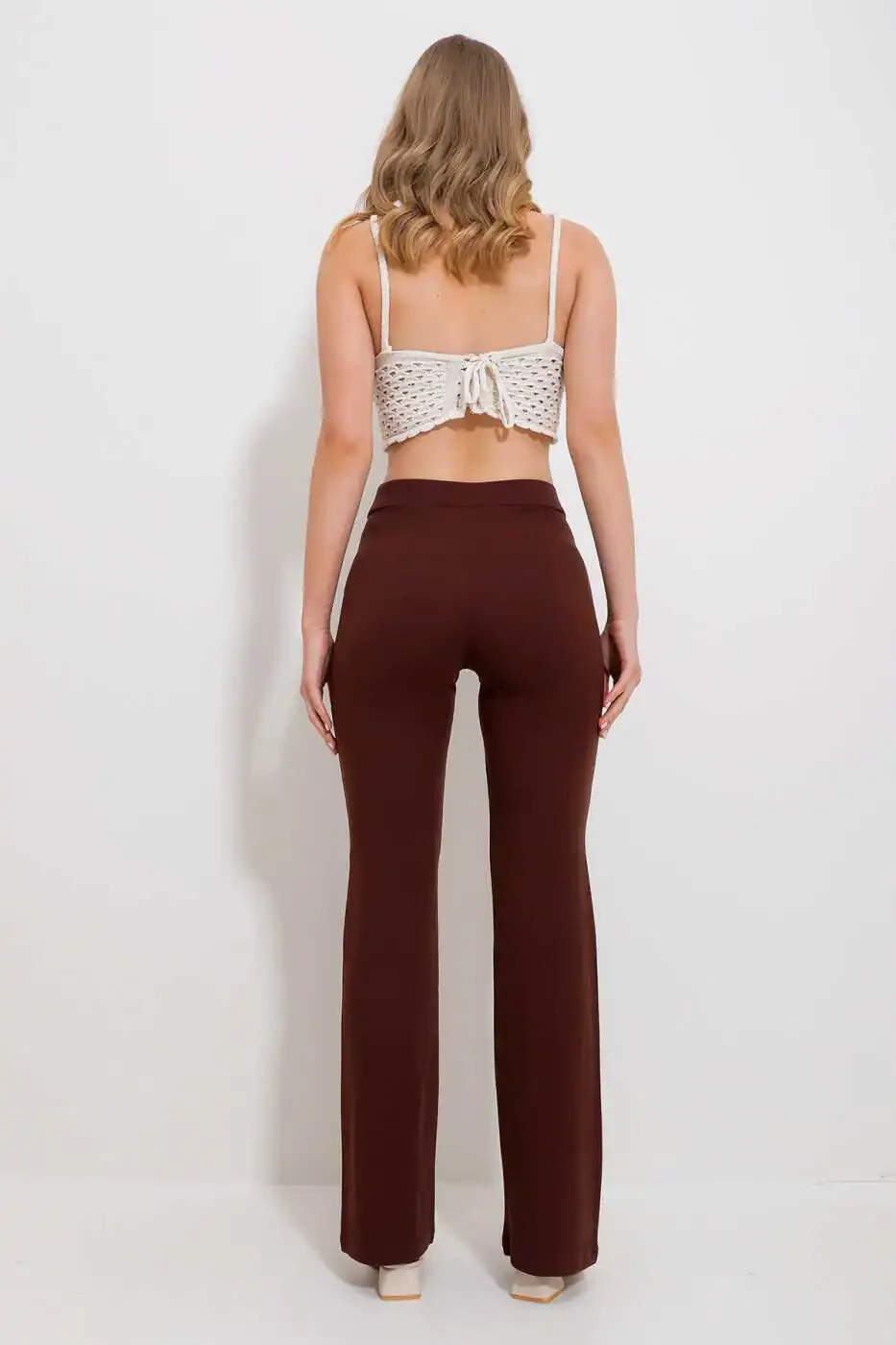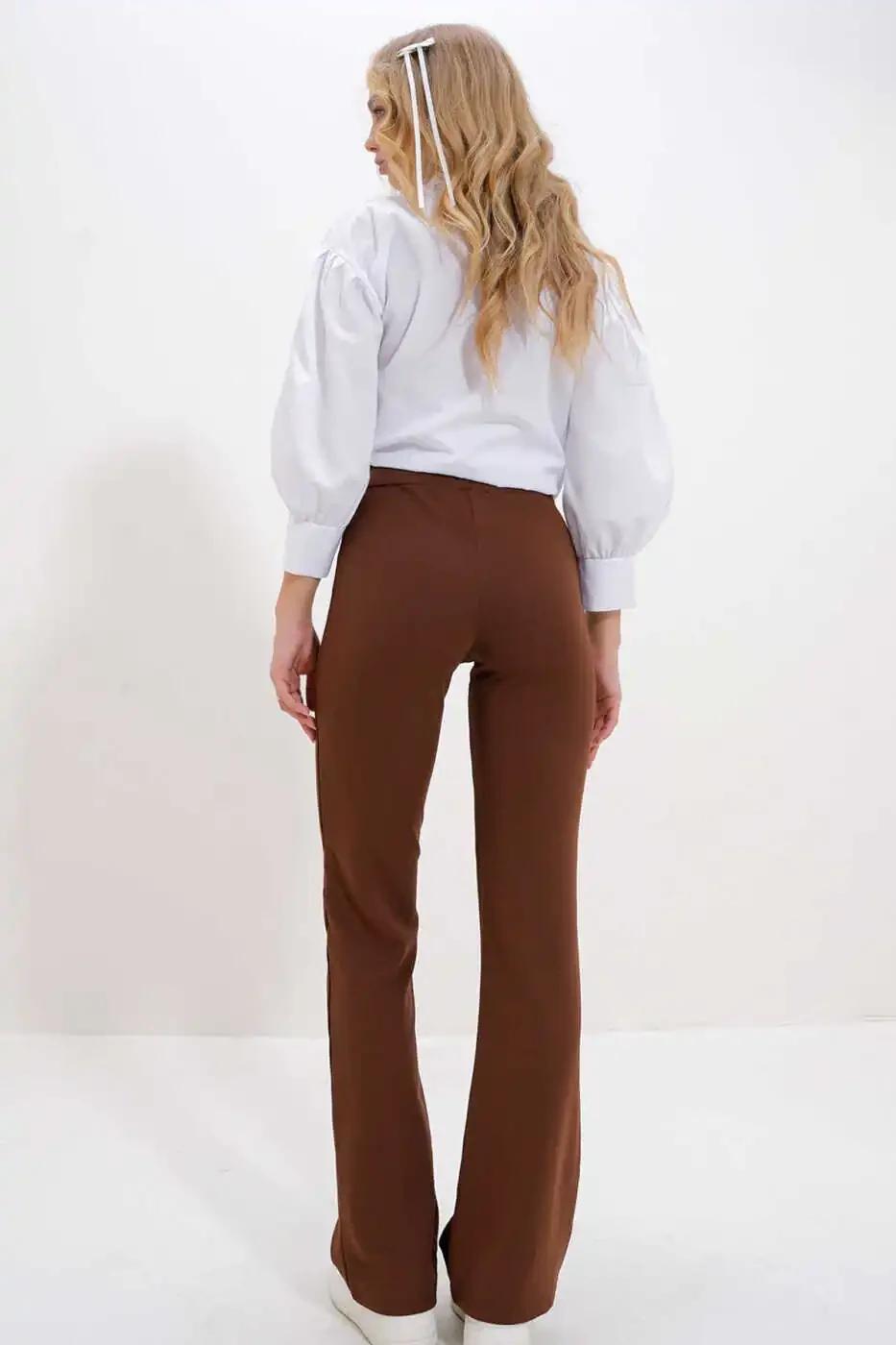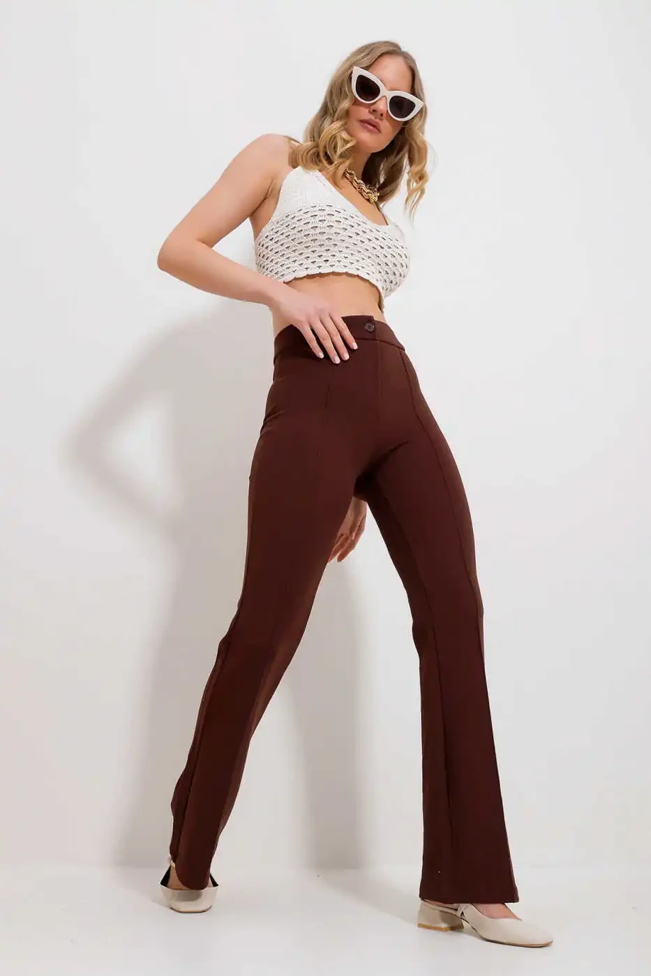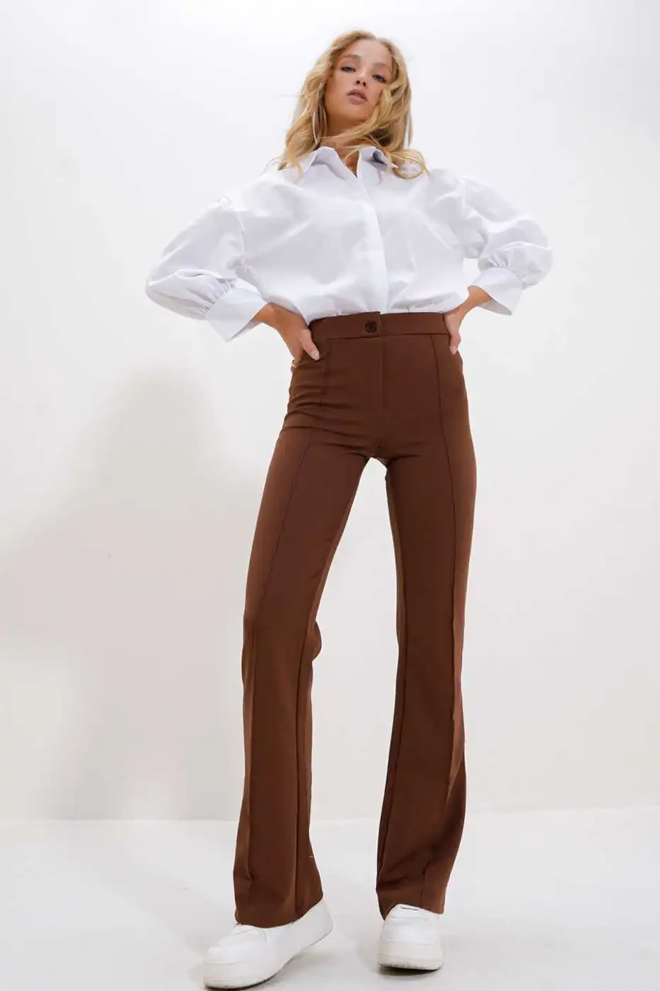 Uslub va qulaylikni birlashtirgan Ayollar uchun Kofe Rangi Yuqori Belli Old Tomonidan Yoriqli Keng Oyoqli Likrali Shim ALC-X9979 sizning garderobingizning ajralmas qismi bo'ladi. Yuqori beli bilan sizning siluetiingizni mukammal darajada ta'kidlaydigan shim, old tomonidagi yoriqlar bilan zamonaviy ko'rinish beradi. Keng oyoqlari tufayli harakat erkinligini taqdim etadigan shim, likrali tuzilishi bilan kun bo'yi qulaylikni ta'minlaydi.