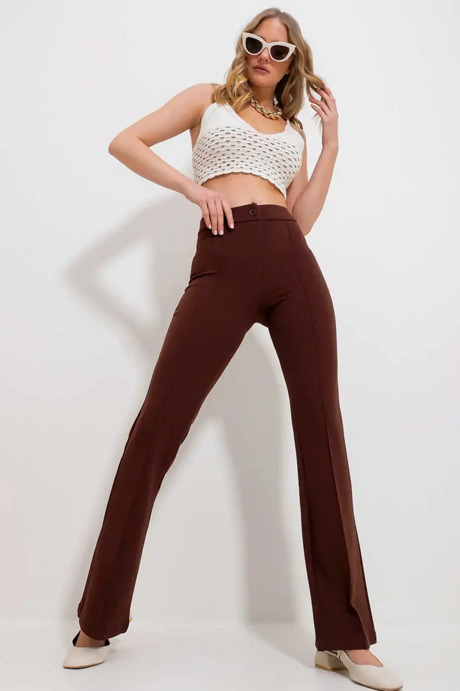 Ayollar uchun Kofe Rangi Yuqori Belli Old Tomonidan Yoriqli Keng Oyoqli Likrali Shim ALC-X9979 kundalik foydalanish uchun, maxsus kunlar va har qanday muhitga moslashtirilgan holda yaratilgan. Ham uslubli, ham qulay ko'rinishga ega bo'lishni istagan ayollar uchun ideal tanlovdir.