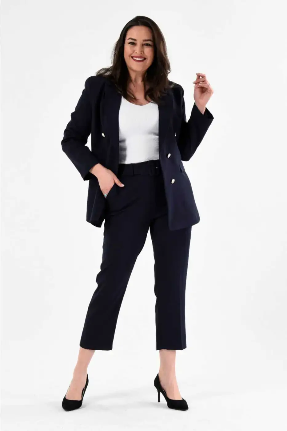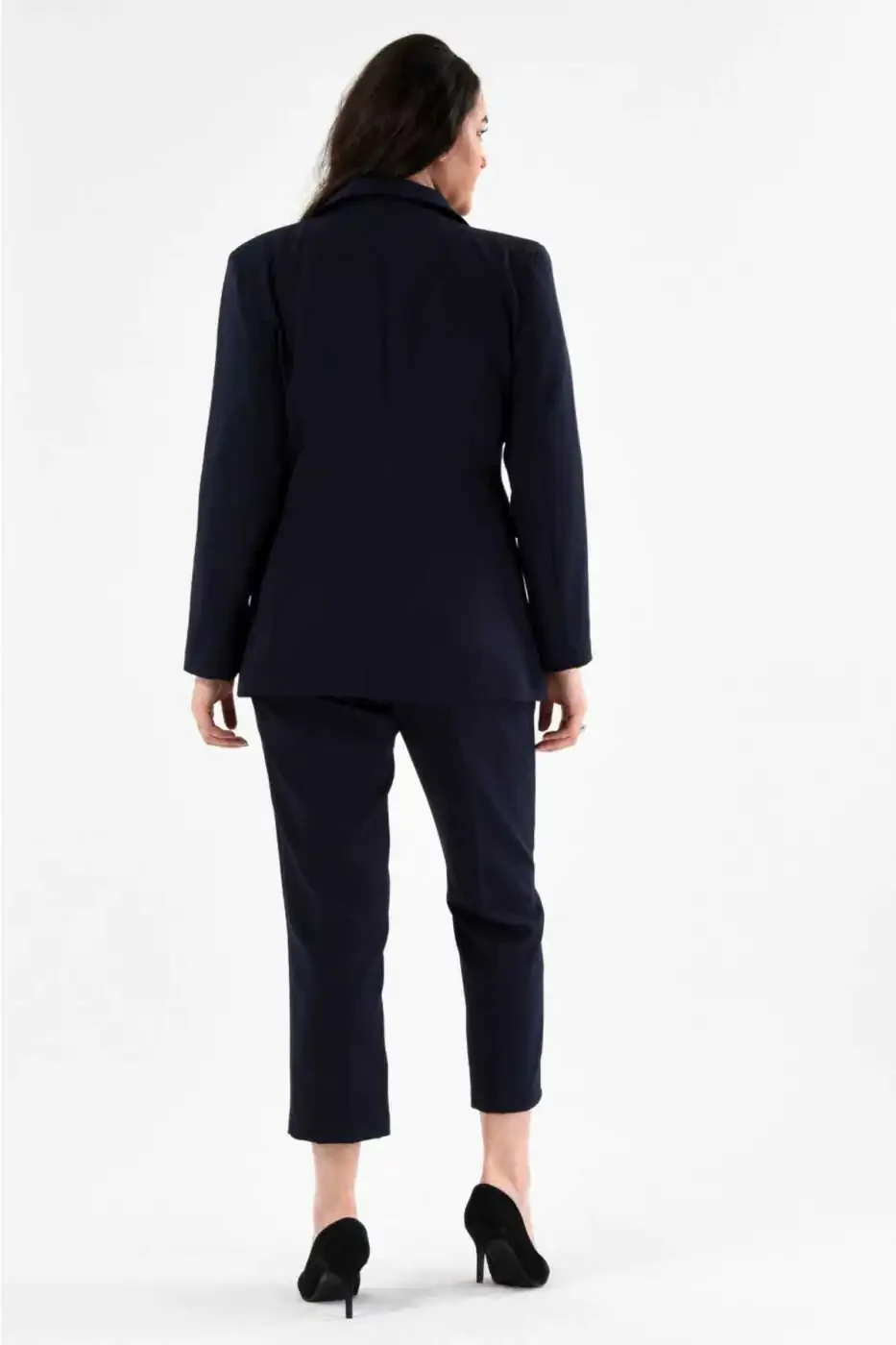 Blazer jilet nafis tugmalari va zamonaviy kesimi bilan ajralib turadi. Ko'krak qismidagi cho'ntaklar o'ziga xos jozibasini kuchaytiradi va shu bilan birga amaliylikni ta'minlaydi.