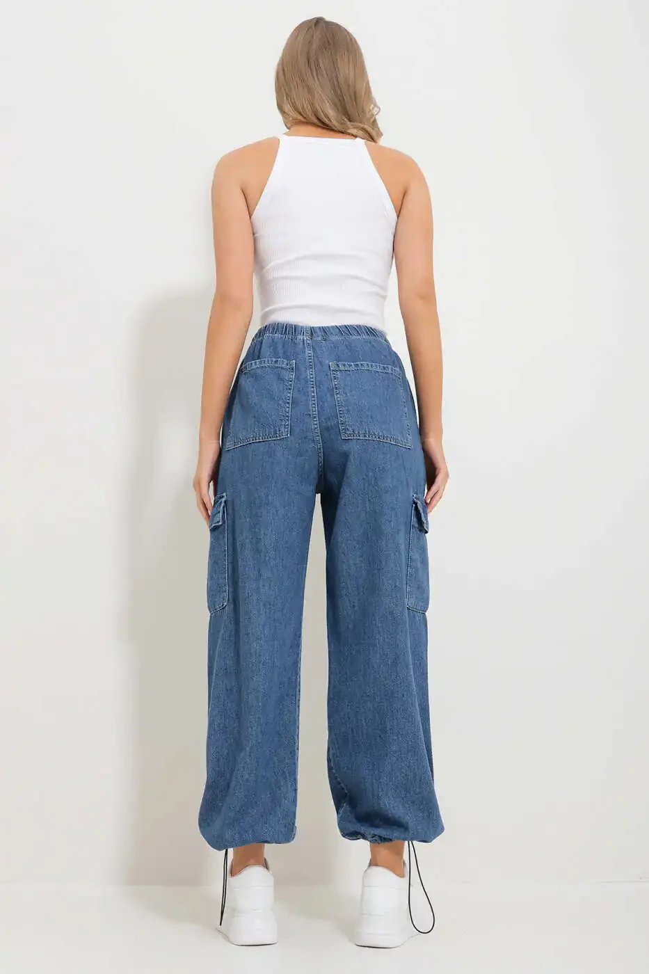 Stil va konforni birlashtiruvchi Ayollar uchun ko'k rangli elastik bel va manjetli cho'ntakli kargo jogger shimlari sizning kundalik hayotingizning ajralmas qismiga aylanadi! Bo'sh kesilgan va yumshoq matodan tikilgan bu shim kun bo'yi konfor beradi va sizning uslubingizni to'ldiradi.