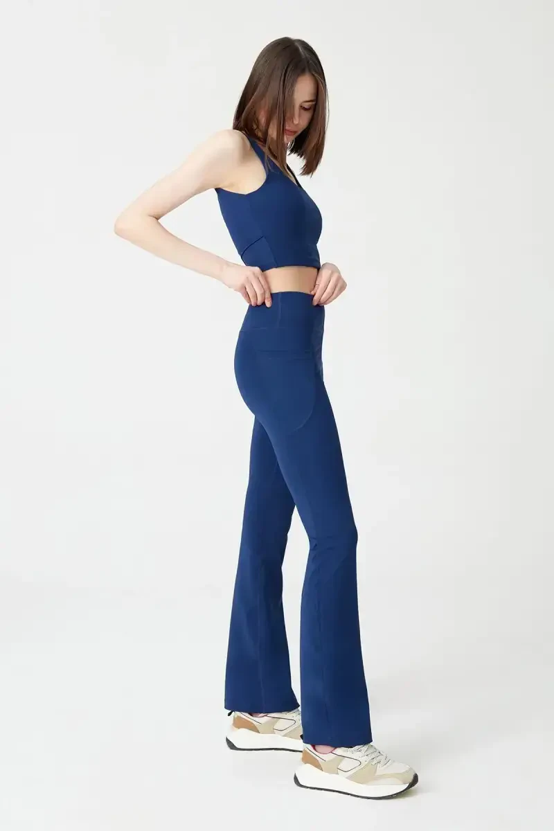 Ispancha kesim oyoqlaringizni uzunroq va ingichka ko'rsatadi, kengaytirilgan dizayn esa zamonaviy va zamonaviy ko'rinish beradi. Ko'k rang har qanday kiyimga mukammal darajada mos keladi va uslubingizga o'ziga xoslik qo'shadi. Kundalik foydalanish uchun, sport mashg'ulotlari uchun yoki kechqurun tashqariga chiqish uchun, bu leggings har doim sizni uslubli qilib ko'rsatadi.